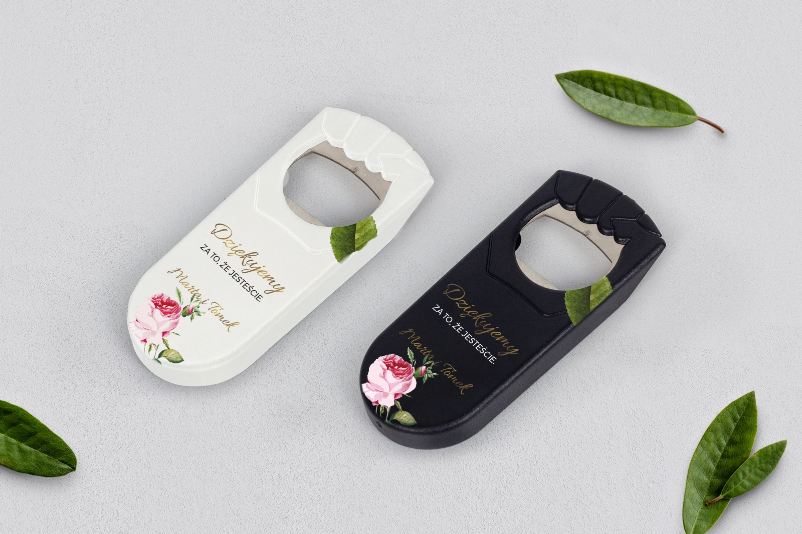 Otwieracz i zamykacz do butelek to praktyczny prezent dla gości weselnych (głównie dla Panów ??). Nie zapominając jednak o piękniejszej połówce przygotowaliśmy m. in: kieszonkowe lusterka z których każda Pani się ucieszy. A dla najmłodszych gości proponujemy drewnianą zabawkę Jojo lub układankę (pozostałe prezenty znajdują się w produktach powiązanych poniżej). W końcu nikt nie powiedział, że prezentem dla gości musi być jeden upominek ?.