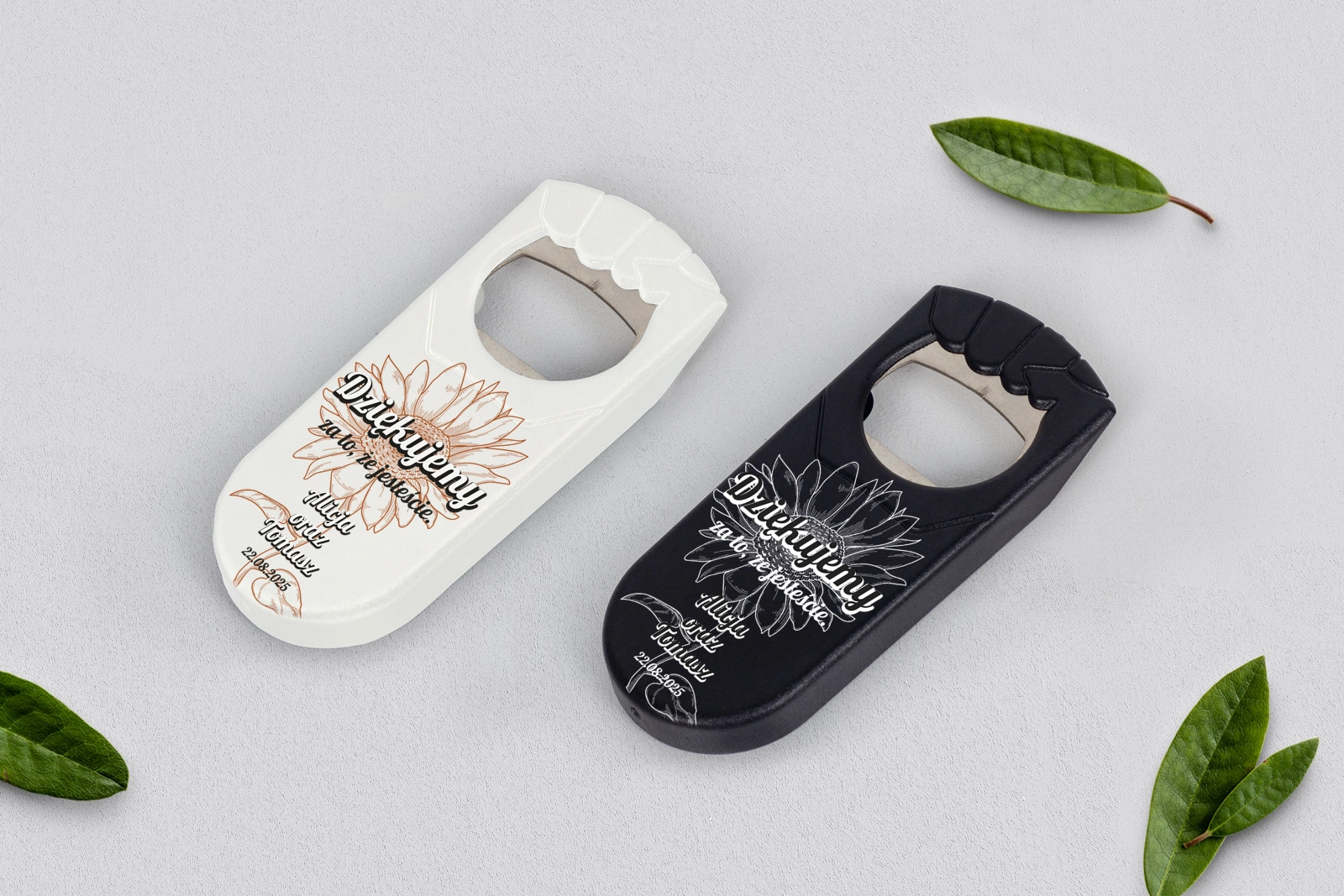 Otwieracz i zamykacz do butelek to praktyczny prezent dla gości weselnych (głównie dla Panów ??). Nie zapominając jednak o piękniejszej połówce przygotowaliśmy m. in: kieszonkowe lusterka z których każda Pani się ucieszy. A dla najmłodszych gości proponujemy drewnianą zabawkę Jojo lub układankę (pozostałe prezenty znajdują się w produktach powiązanych poniżej). W końcu nikt nie powiedział, że prezentem dla gości musi być jeden upominek ?.