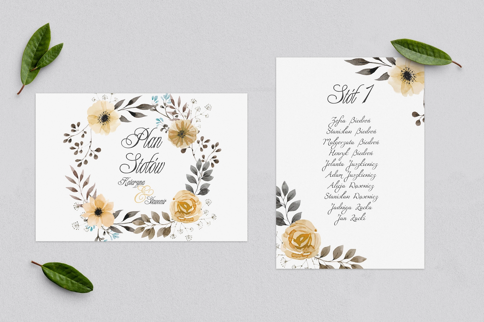 Plan Stołów - Karteczka Akwarelowe Wianki Motyw 4