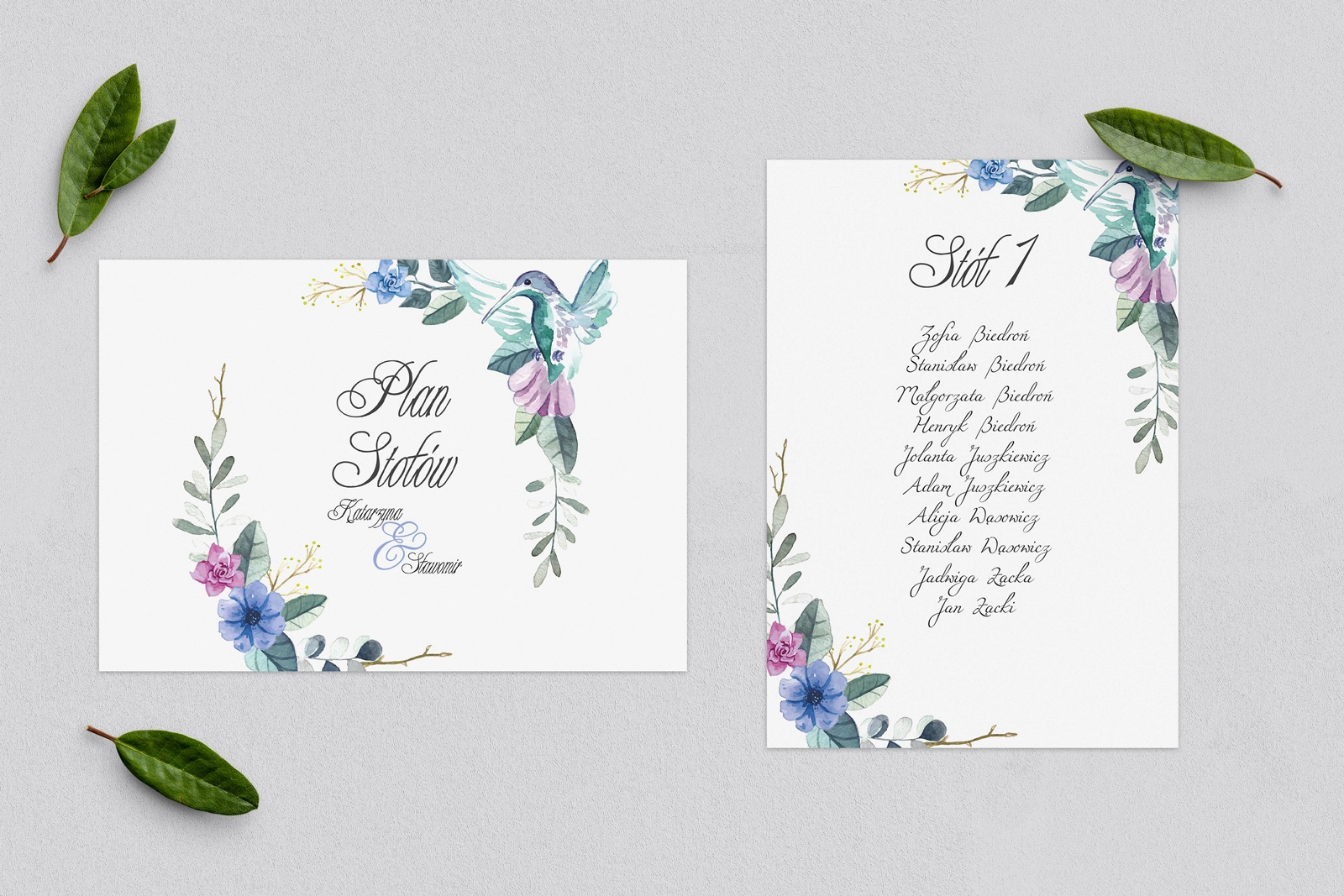 Plan Stołów - Karteczka Akwarelowe Wianki Motyw 8