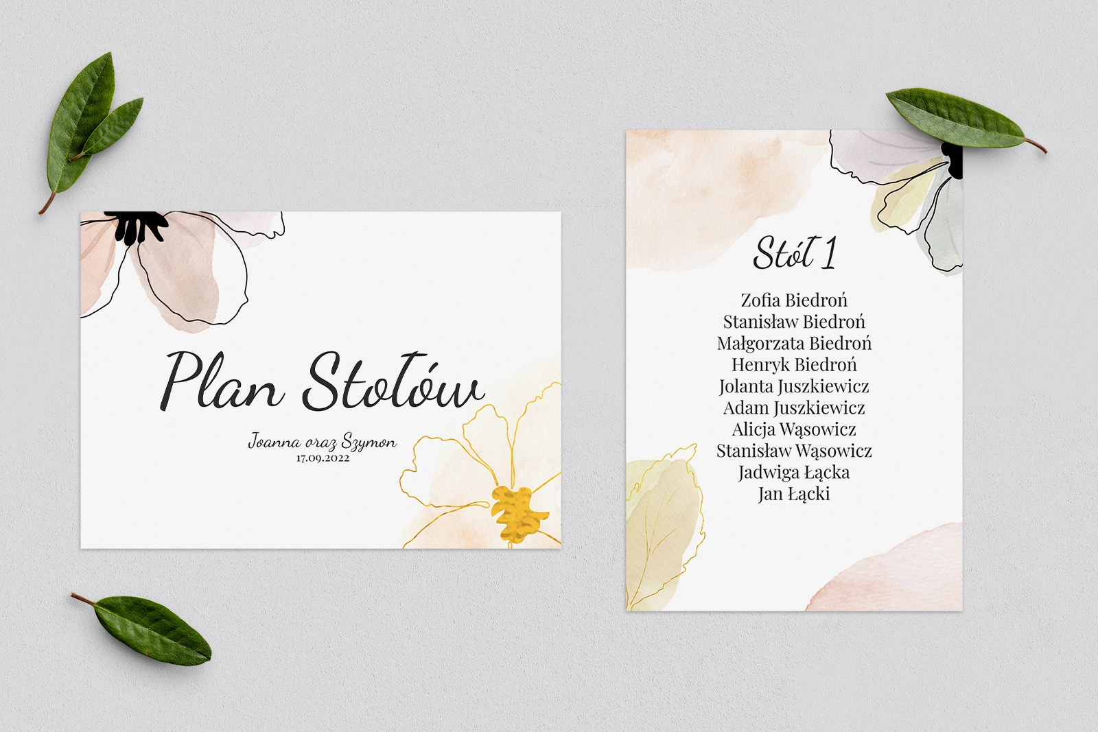 Plan Stołów - Karteczka Watercolor Wedding Motyw 1