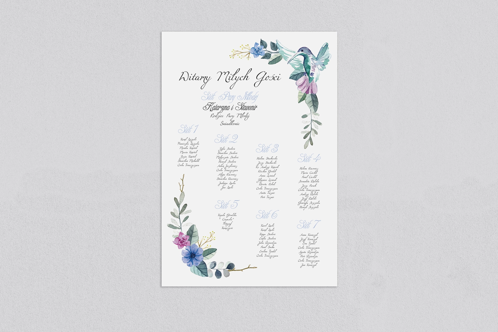 Plan stołów weselnych Akwarelowe Wianki - Motyw 8