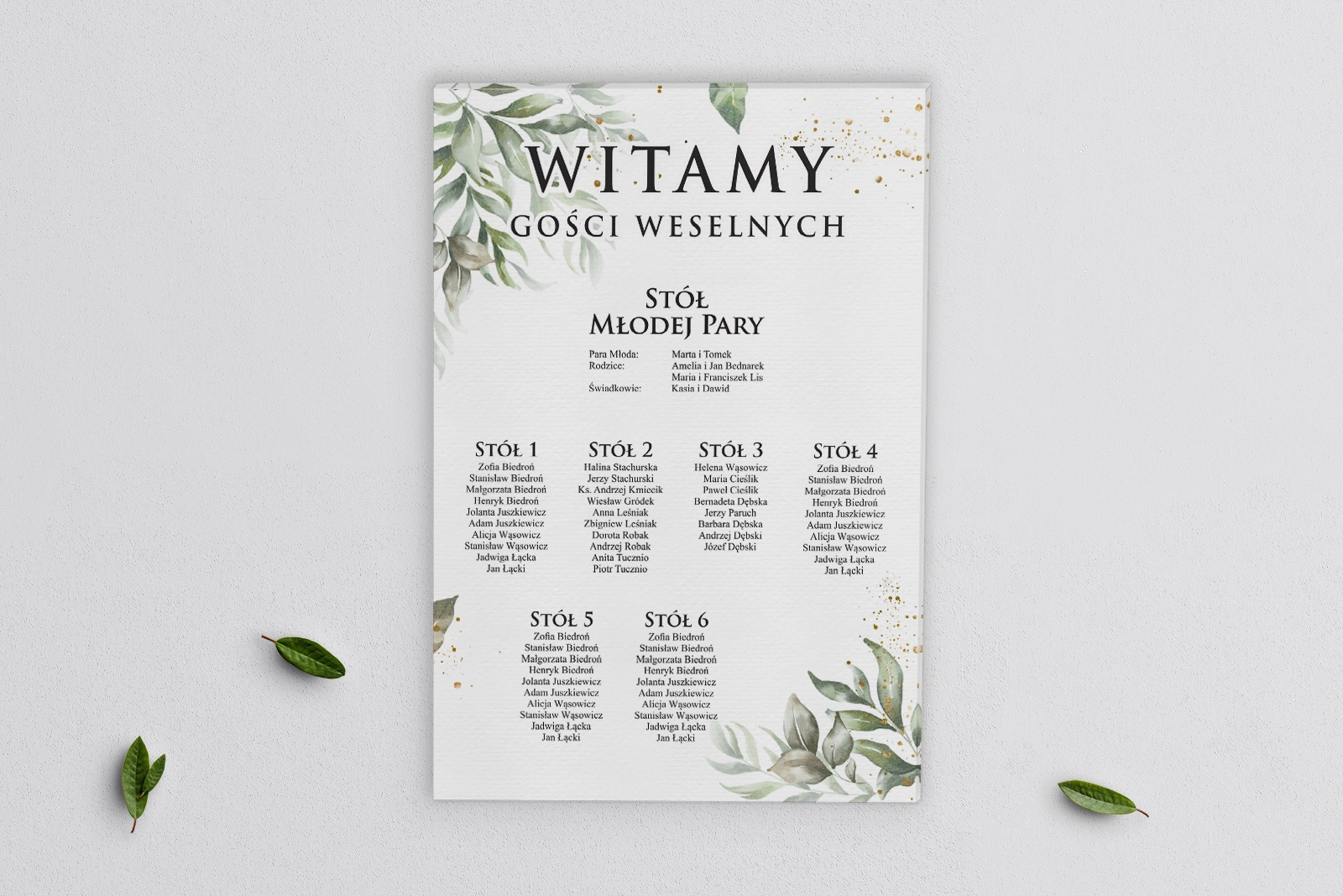 Plan stołów weselnych na płótnie Leaves Motyw 1