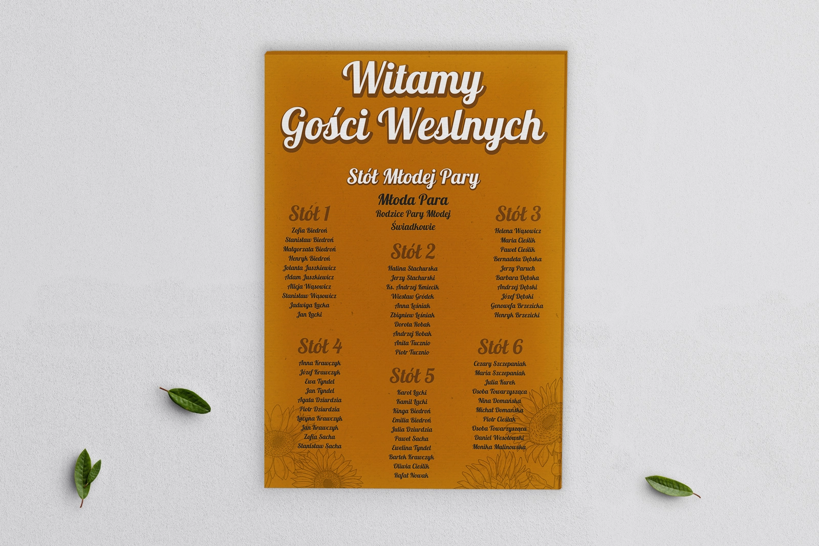 Plan stołów weselnych na płótnie Sunflowers Motyw 3