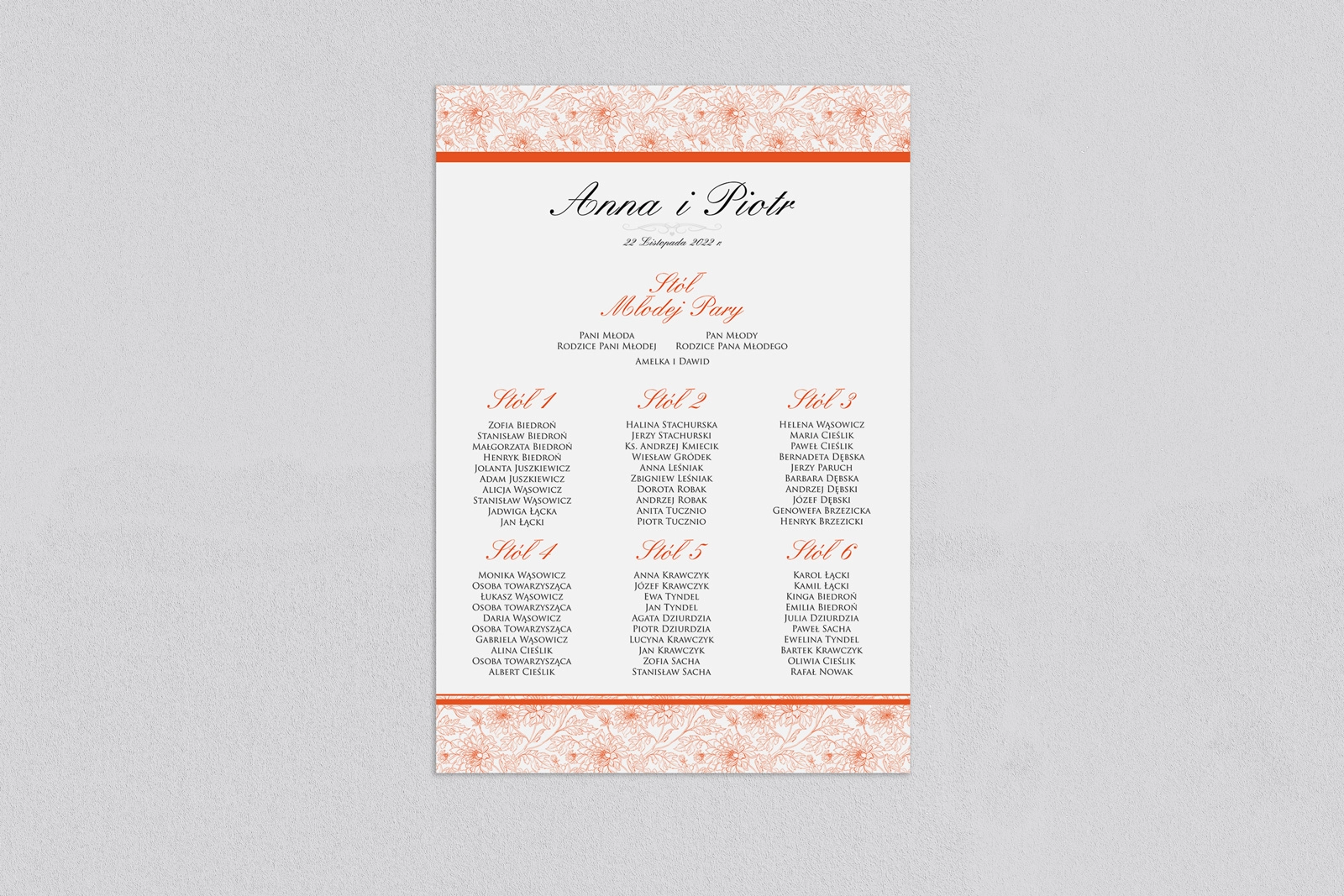 Plan stołów weselnych Ornaments - Motyw 7