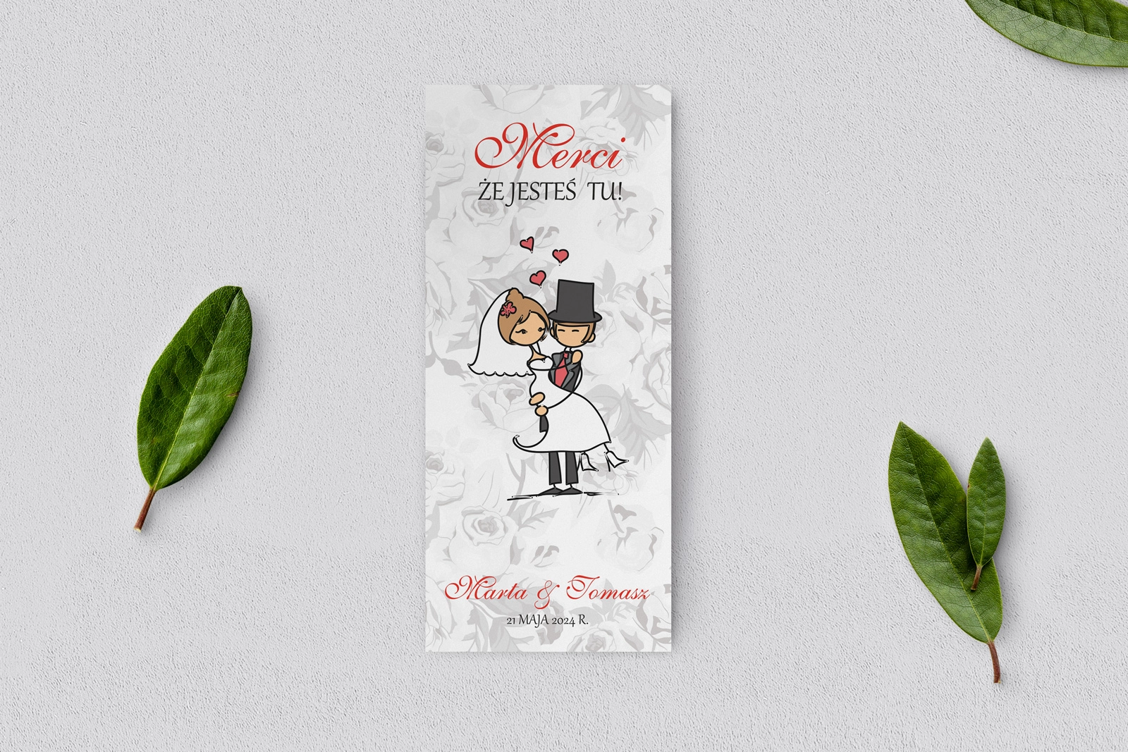 Podziękowanie Merci - Karteczka Zakochani Motyw 3