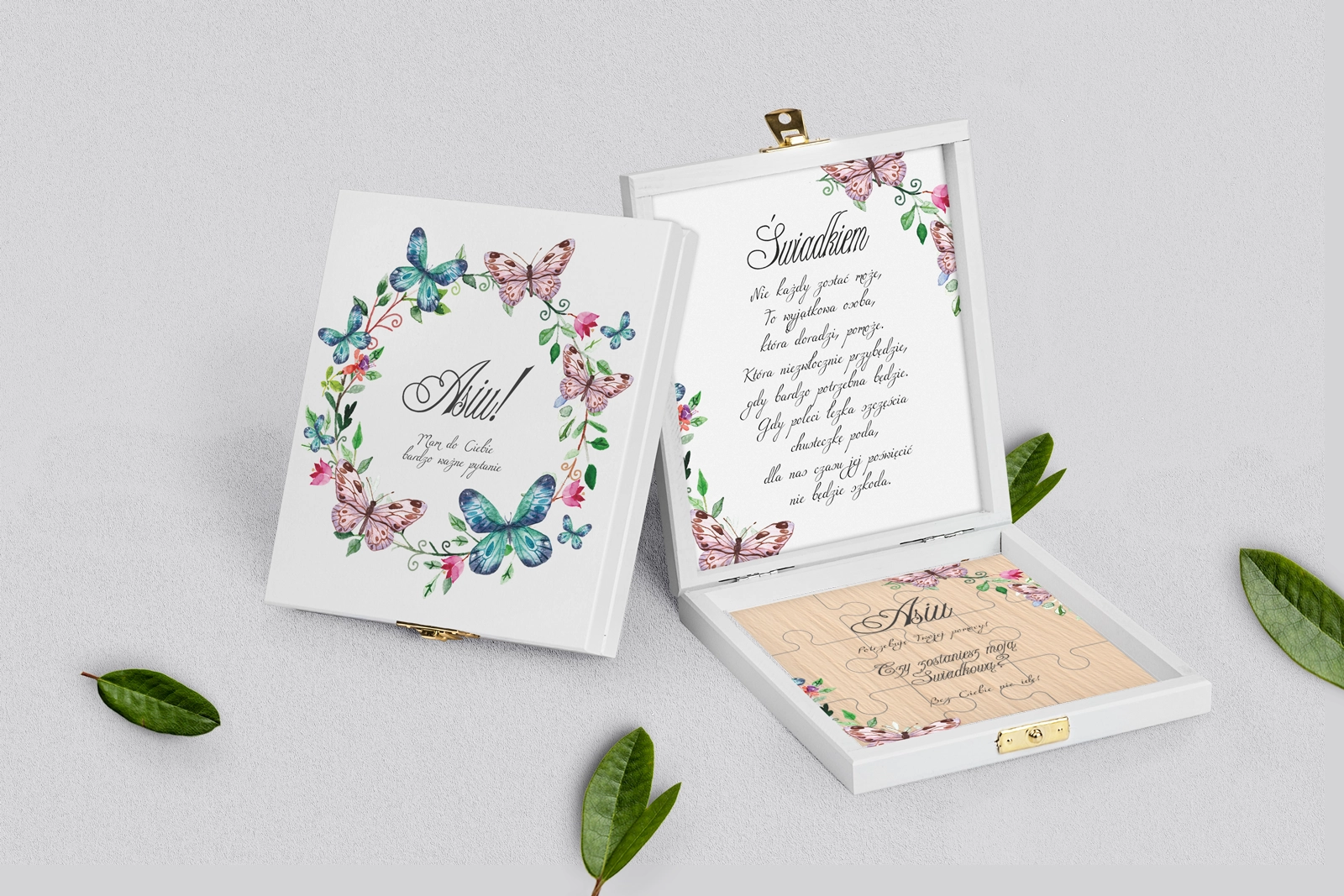 Prośba o świadkowanie - białe puzzle Akwarelowe Wianki Motyw 3