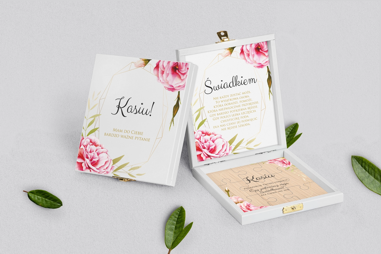 Prośba o świadkowanie - białe puzzle Flowers & Frame Motyw 5