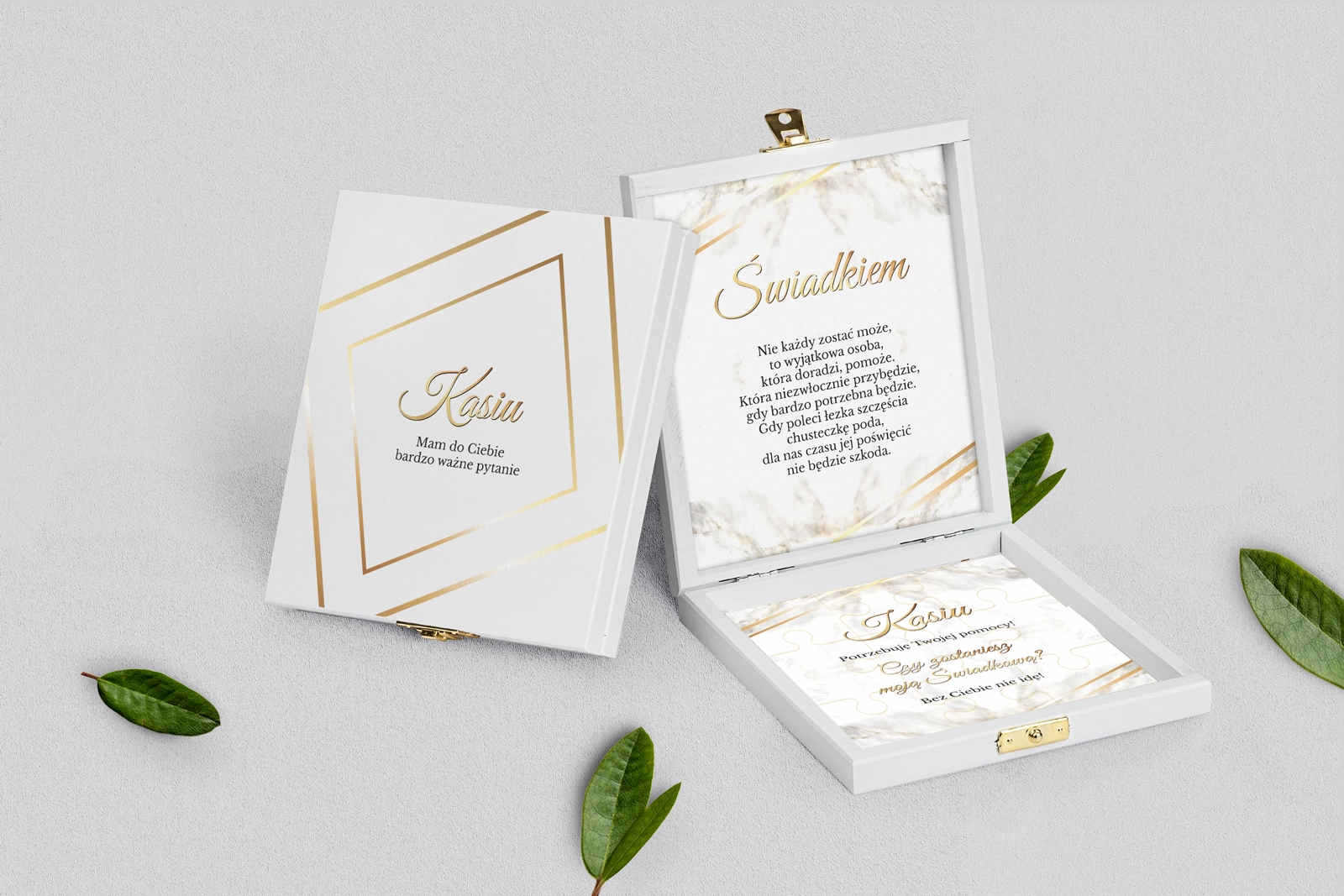 Prośba o świadkowanie - białe puzzle Marmur & Złoto Motyw 1