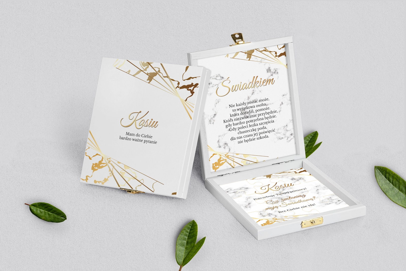 Prośba o świadkowanie - białe puzzle Marmur & Złoto Motyw 4