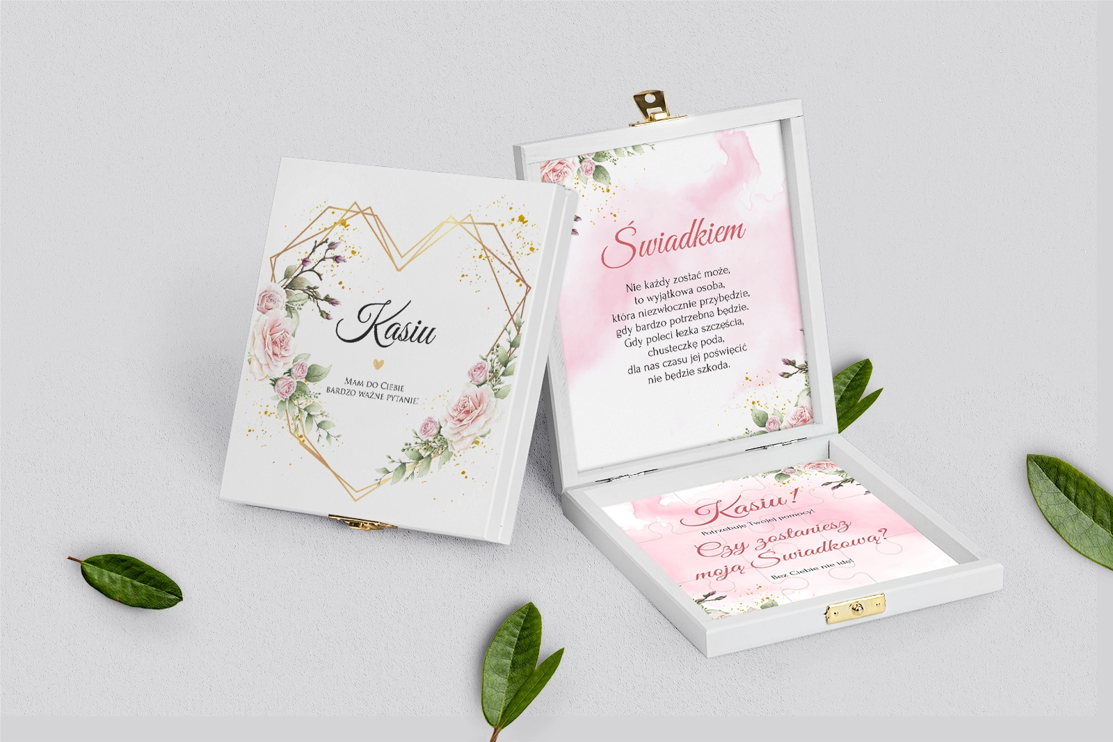 Prośba o świadkowanie - białe puzzle Złote Serca