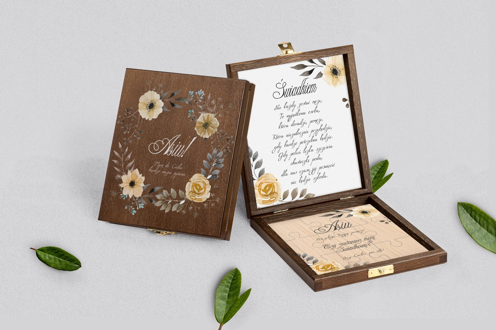 Na tej karcie produktu kupujesz Drewnianą prośbę o świadkowanie w konfiguracji określonej w specyfikacji.