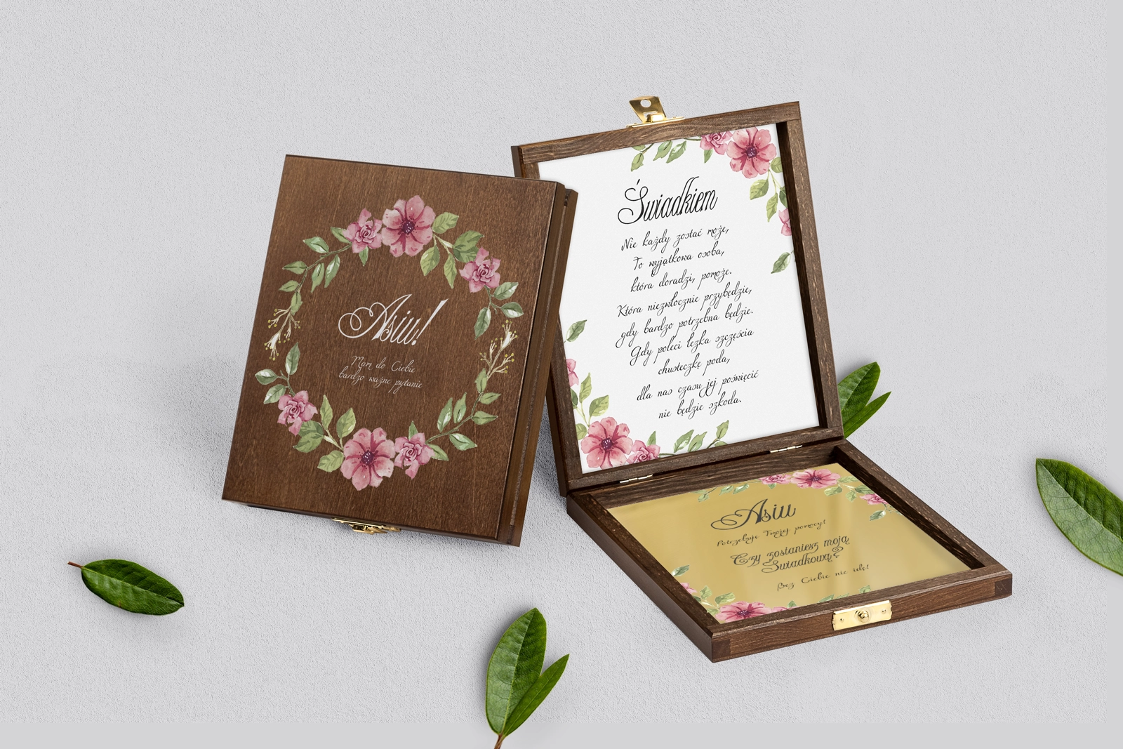 Na tej karcie produktu kupujesz Drewnianą prośbę o świadkowanie w konfiguracji określonej w specyfikacji.