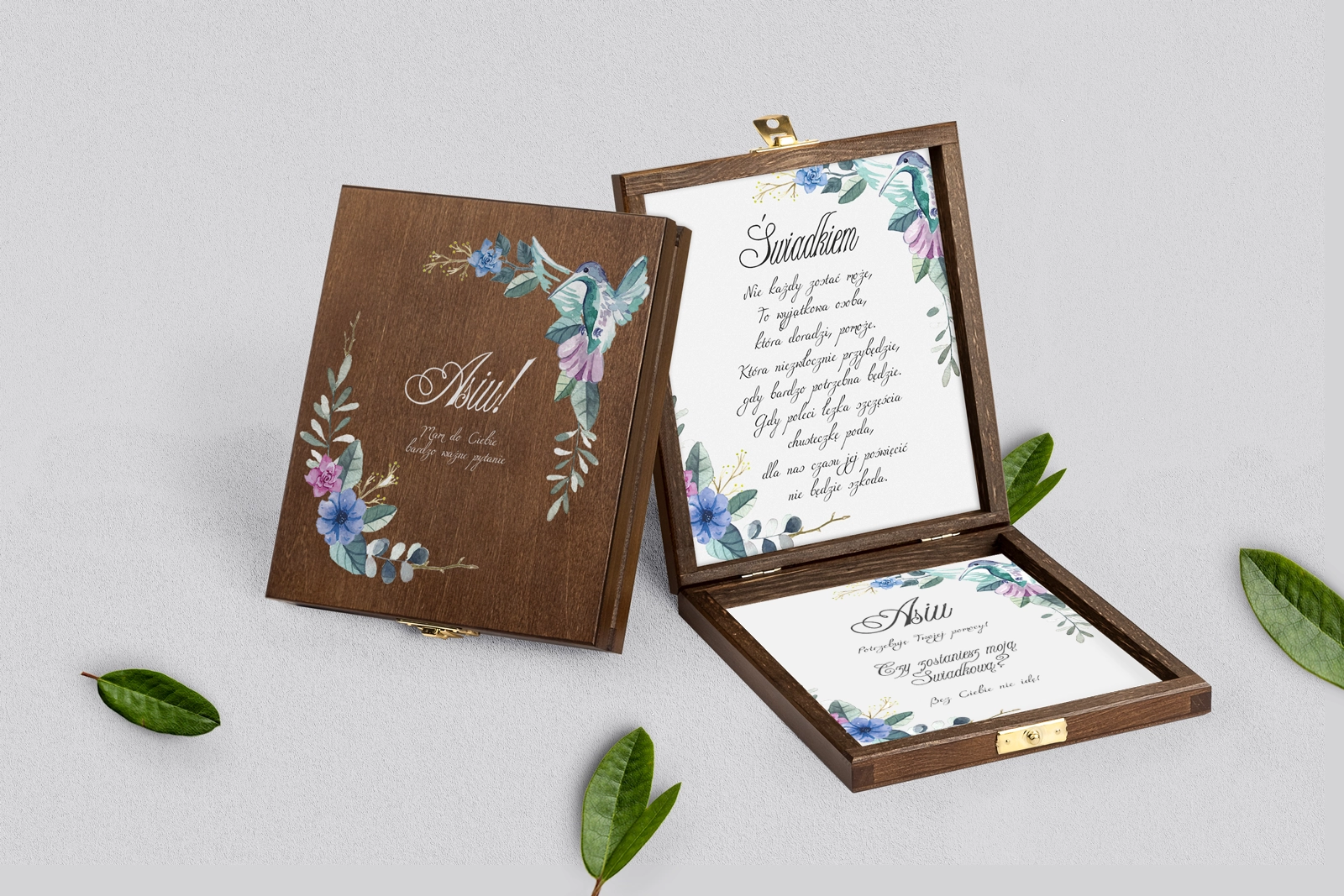 Na tej karcie produktu kupujesz Drewnianą prośbę o świadkowanie w konfiguracji określonej w specyfikacji.