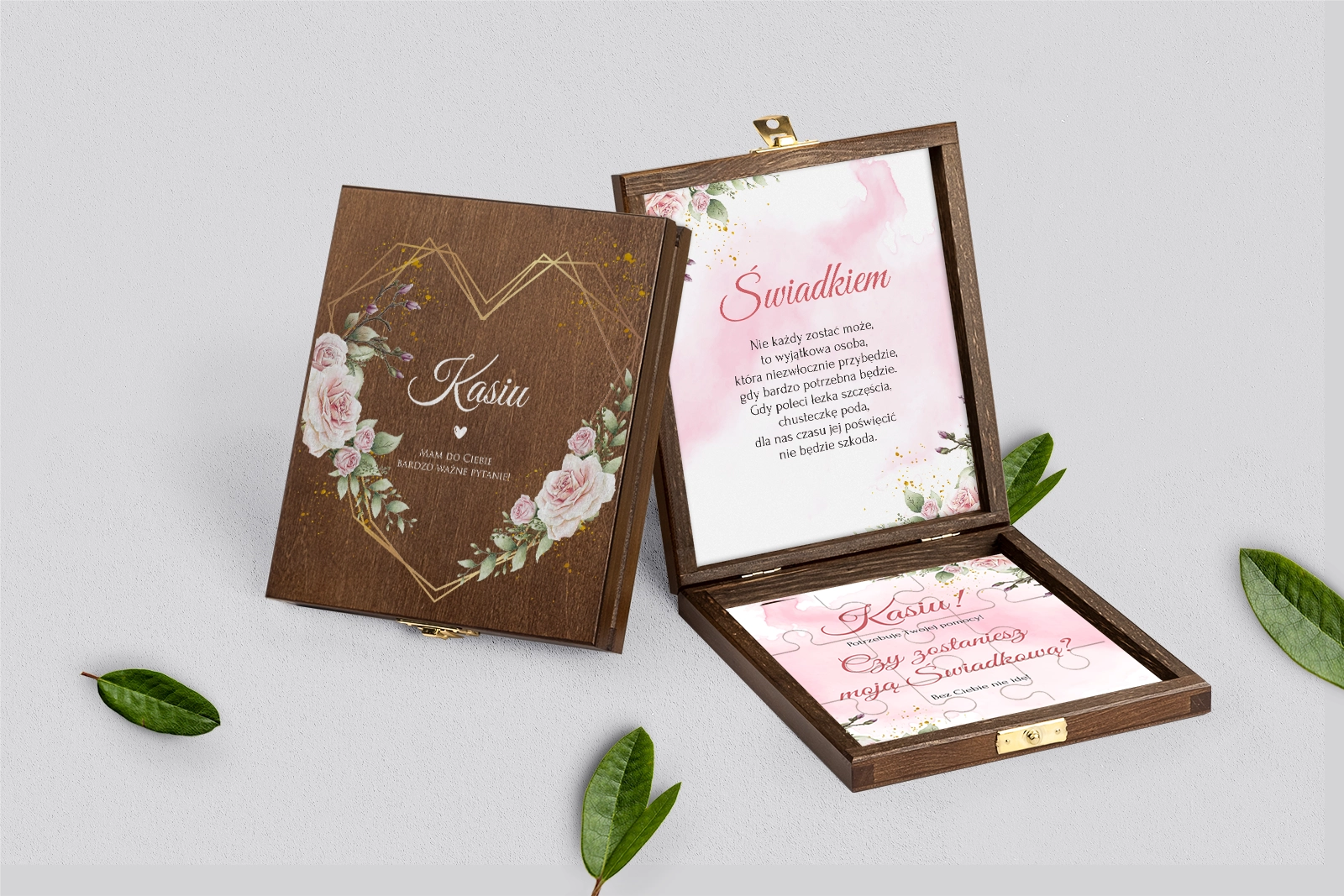 Prośba o świadkowanie - brązowe puzzle Złote Serca
