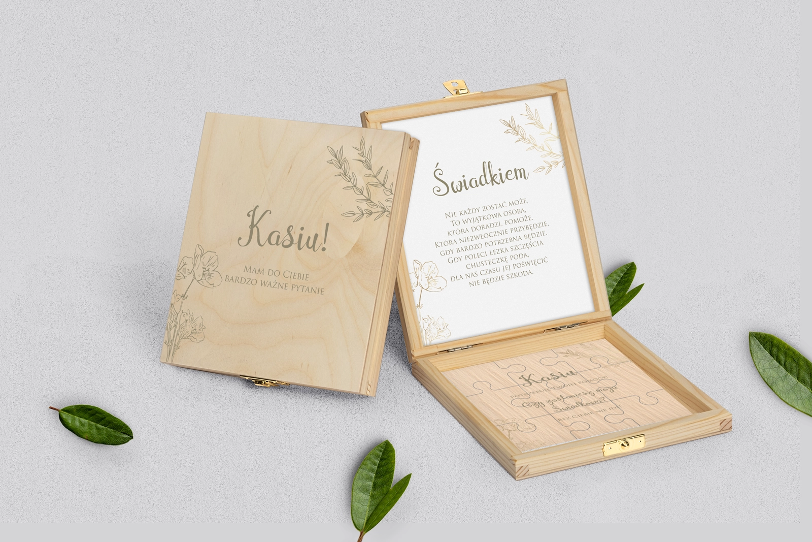 Na tej karcie produktu kupujesz Drewnianą prośbę o świadkowanie w konfiguracji określonej w specyfikacji.