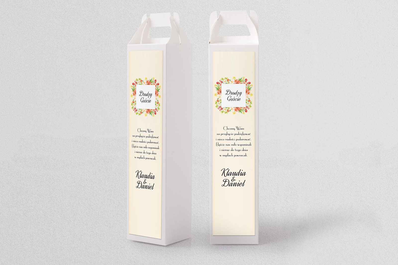 Pudełka na alkohol Love to połączenie stylu rustykalnego ze stylem klasycznym. Dzięki wspaniałym kwiatom pudełko wygląda ekskluzywnie, a piaskowe tło nadaje całości uroku miłości.