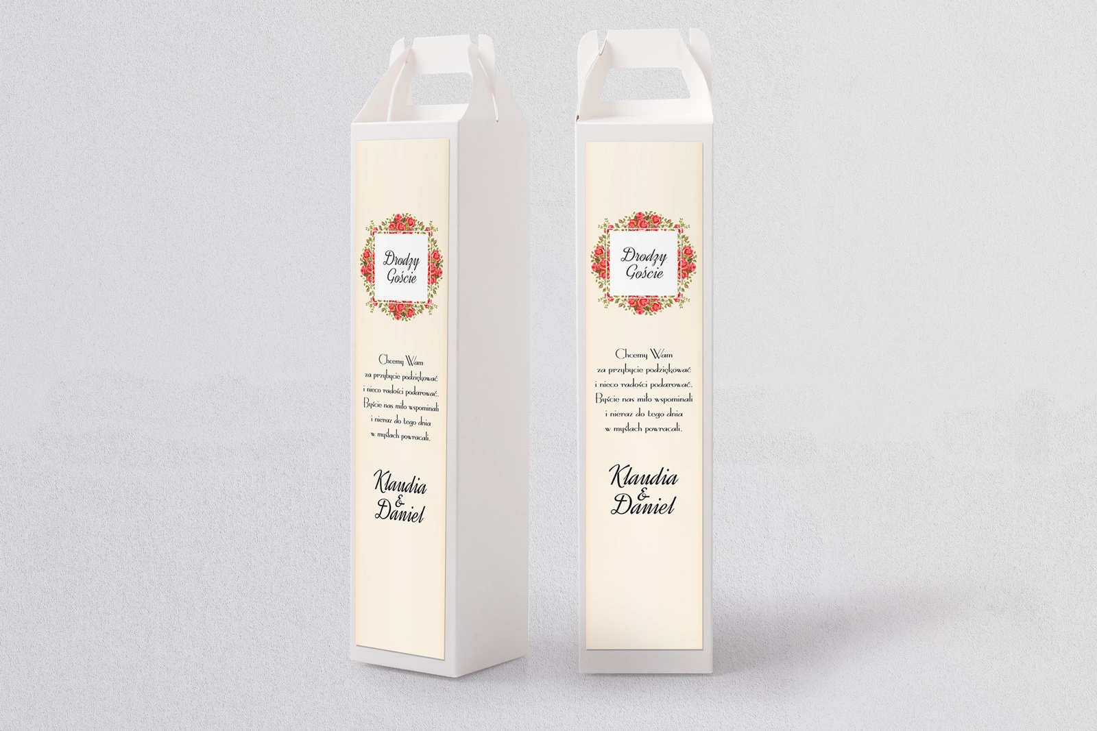 Pudełka na alkohol Love to połączenie stylu rustykalnego ze stylem klasycznym. Dzięki wspaniałym kwiatom pudełko wygląda ekskluzywnie, a piaskowe tło nadaje całości uroku miłości.
