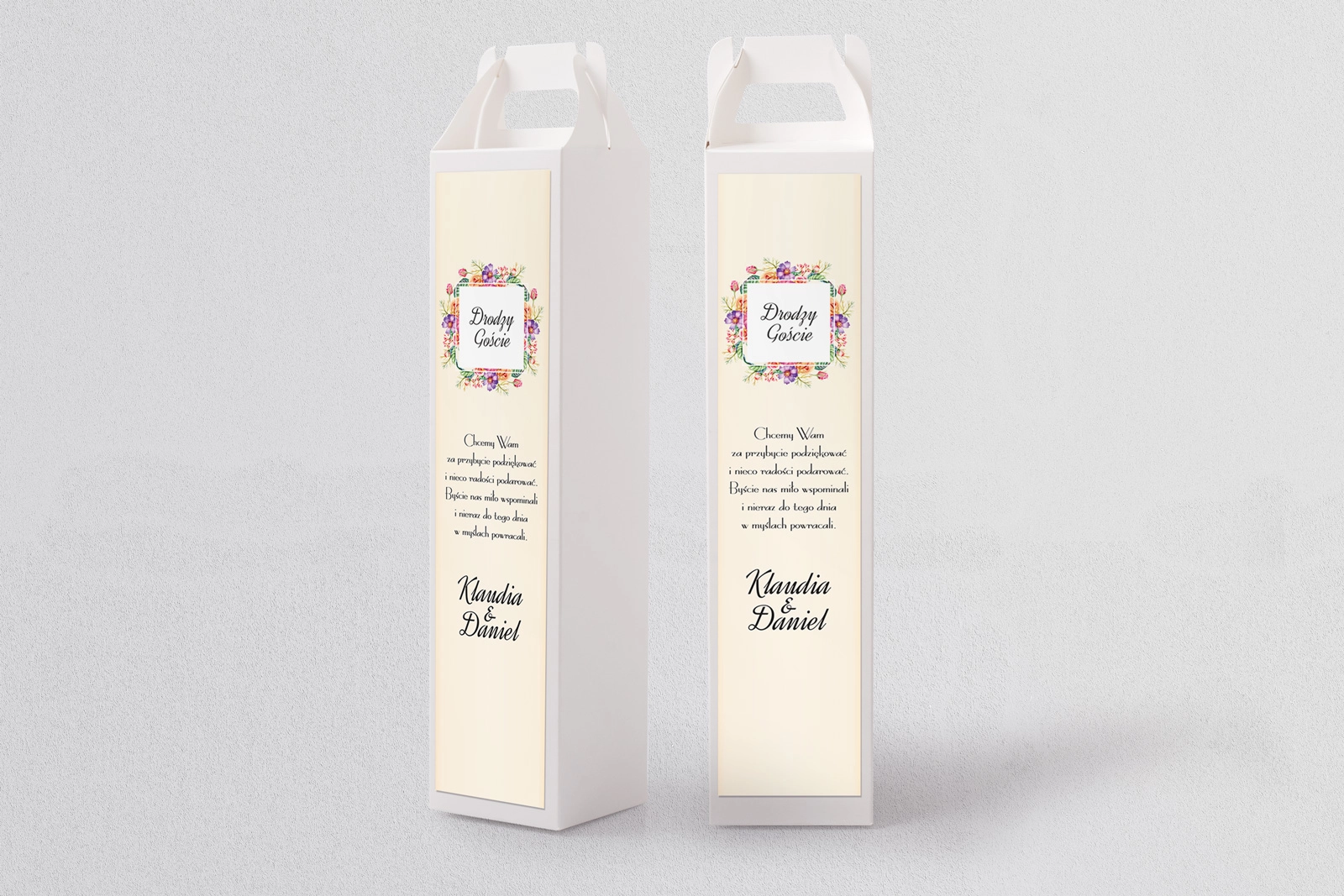 Pudełka na alkohol Love to połączenie stylu rustykalnego ze stylem klasycznym. Dzięki wspaniałym kwiatom pudełko wygląda ekskluzywnie, a piaskowe tło nadaje całości uroku miłości.