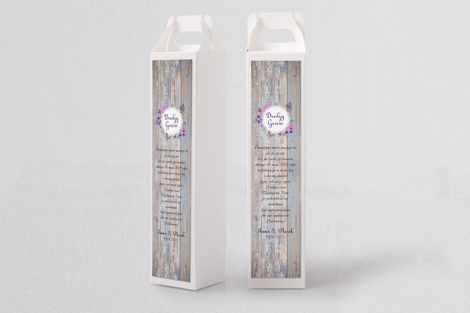 Delikatne brązowe deski a na nich namalowane rustykalne kwiaty, które idealnie przyozdobią każde pomieszczenie. Dzięki takiej szacie graficznej pudełek na alkohol Rustical, każdy będzie mógł zostawić sobie pamiątkę z Waszego najważniejszego dnia.