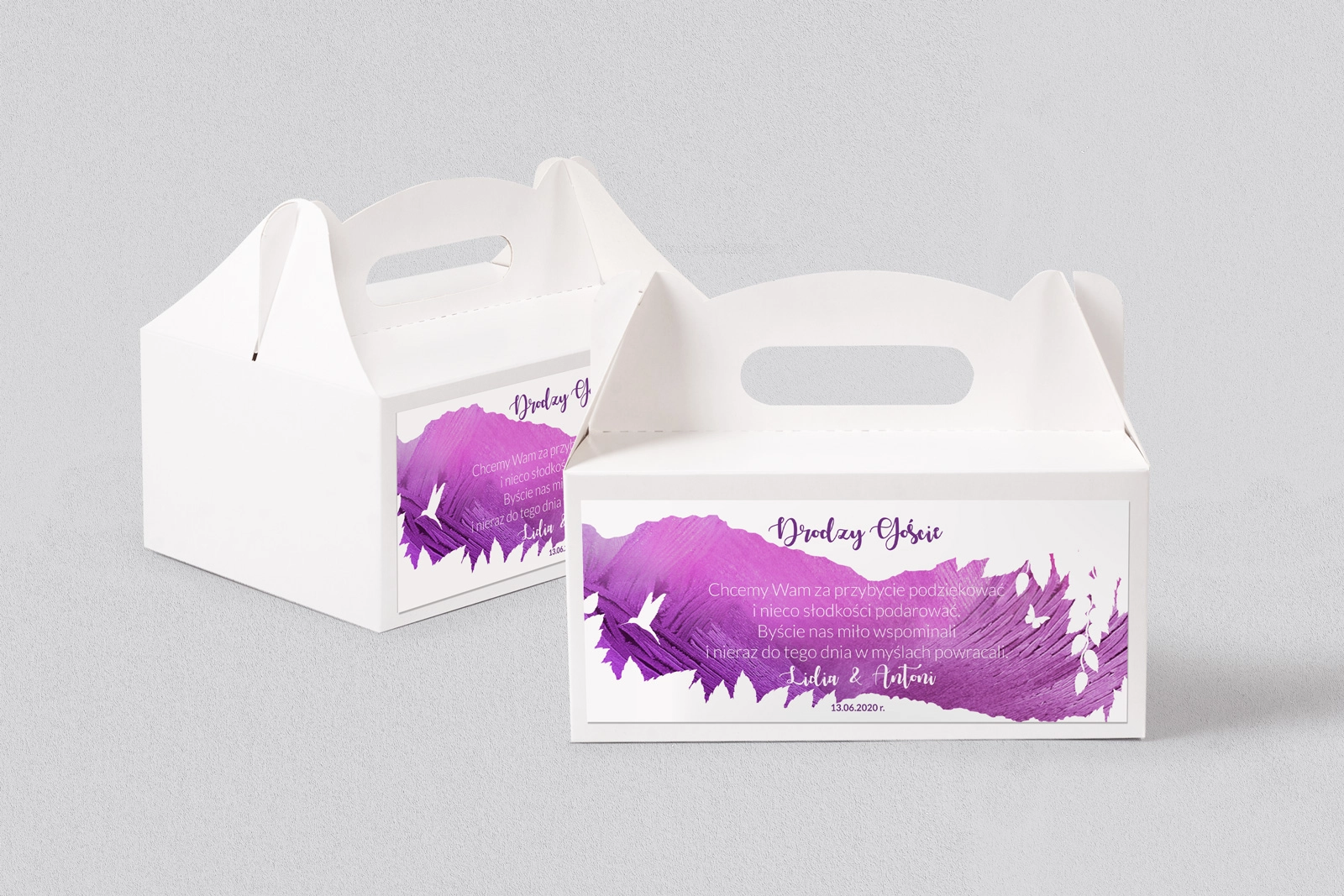 Kartonowe pudełka na placki Stylish pozwolą zabrać trochę uroku wesela do domu Waszych gości. Mogą posłużyć one jako wspaniała ozdoba, która będzie przypominać o cudownych chwilach przeżytych w ten najważniejszy dla Was dzień.