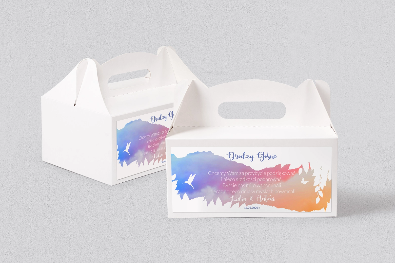 Kartonowe pudełka na placki Stylish pozwolą zabrać trochę uroku wesela do domu Waszych gości. Mogą posłużyć one jako wspaniała ozdoba, która będzie przypominać o cudownych chwilach przeżytych w ten najważniejszy dla Was dzień.