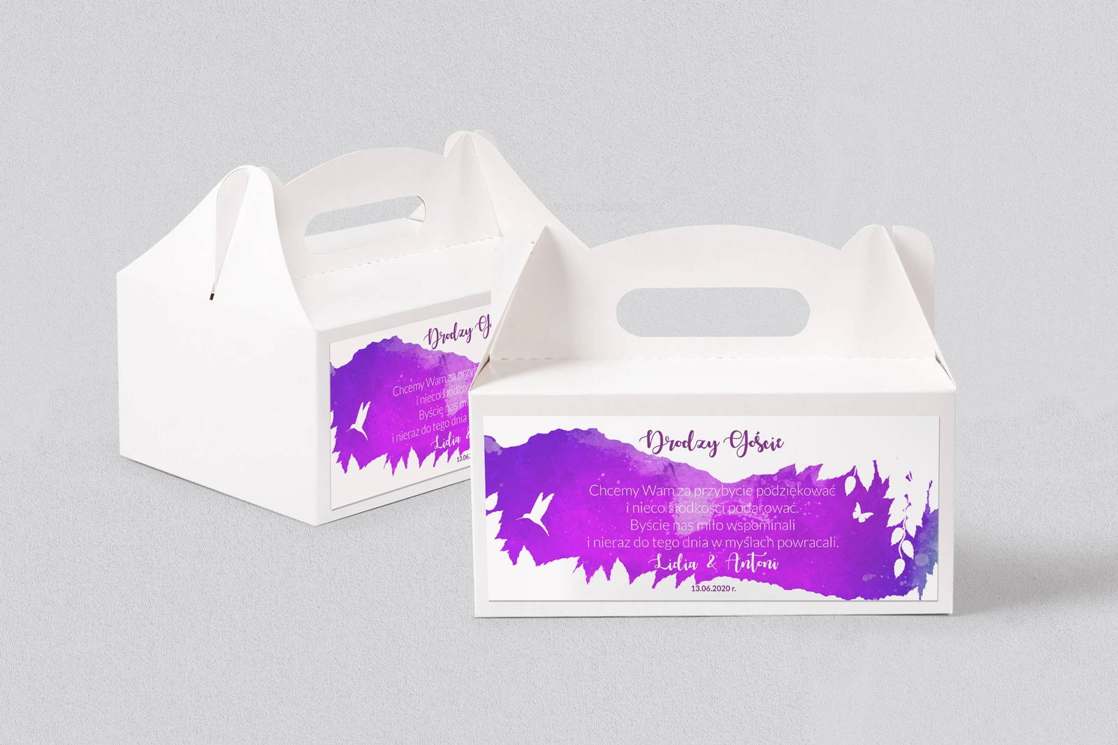 Kartonowe pudełka na placki Stylish pozwolą zabrać trochę uroku wesela do domu Waszych gości. Mogą posłużyć one jako wspaniała ozdoba, która będzie przypominać o cudownych chwilach przeżytych w ten najważniejszy dla Was dzień.