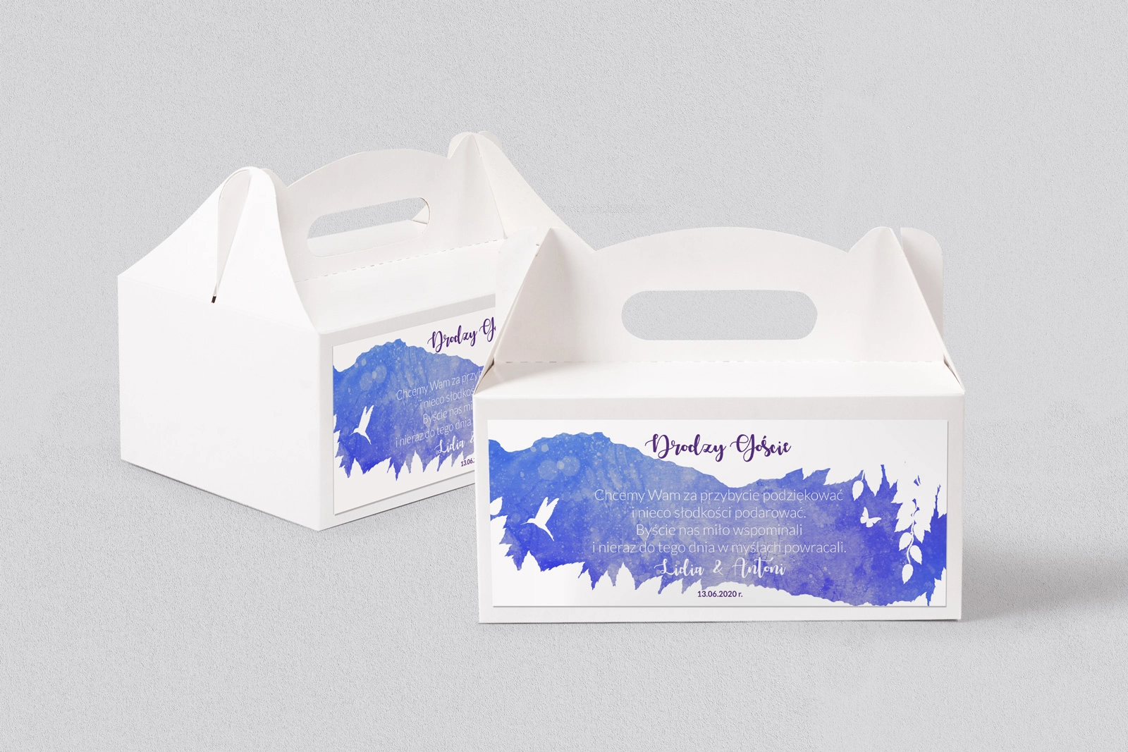Kartonowe pudełka na placki Stylish pozwolą zabrać trochę uroku wesela do domu Waszych gości. Mogą posłużyć one jako wspaniała ozdoba, która będzie przypominać o cudownych chwilach przeżytych w ten najważniejszy dla Was dzień.