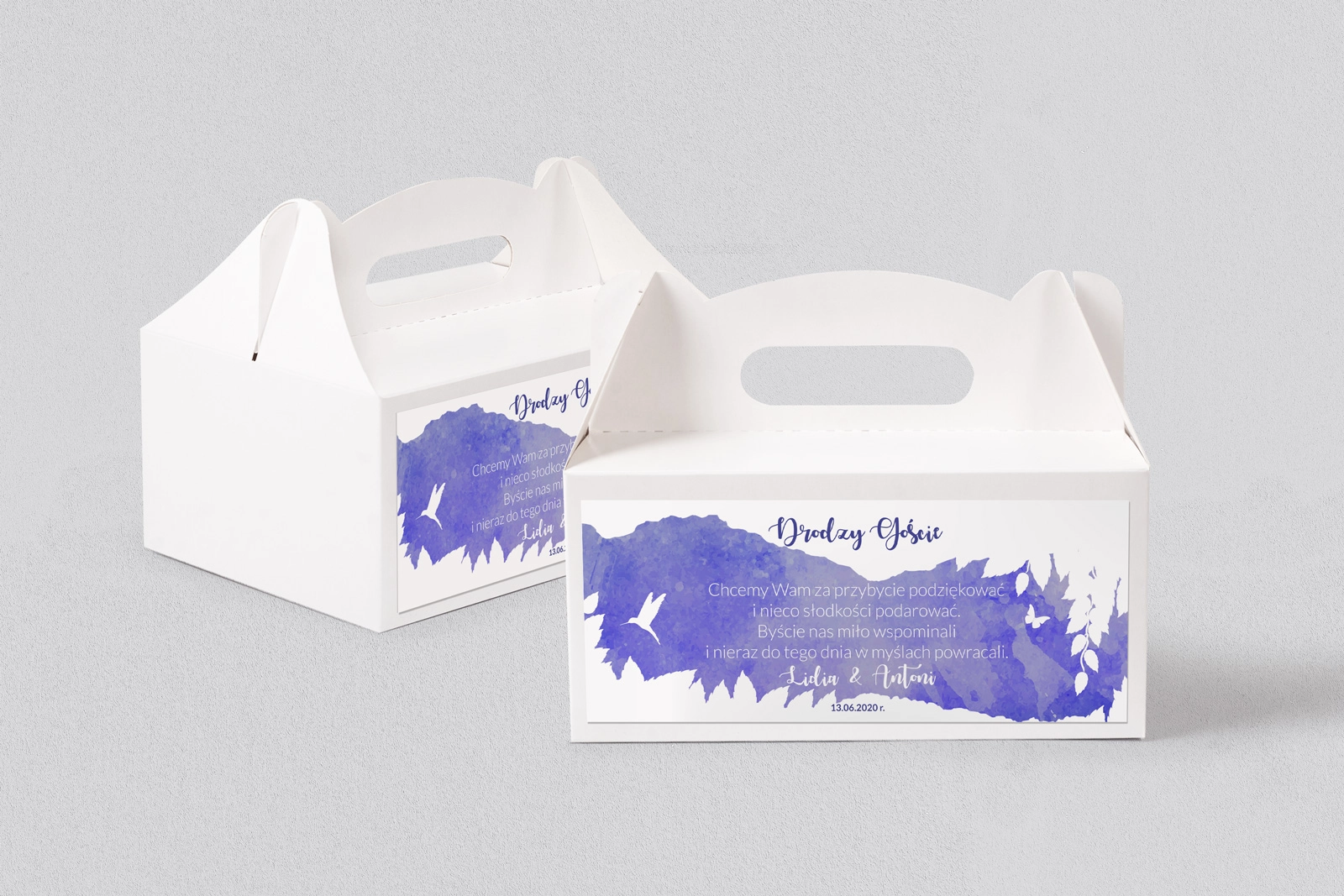 Kartonowe pudełka na placki Stylish pozwolą zabrać trochę uroku wesela do domu Waszych gości. Mogą posłużyć one jako wspaniała ozdoba, która będzie przypominać o cudownych chwilach przeżytych w ten najważniejszy dla Was dzień.