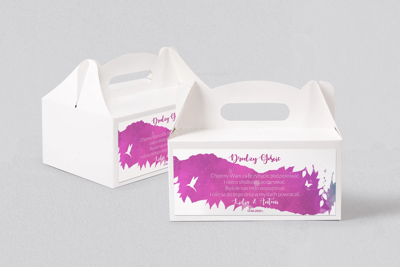 Kartonowe pudełka na placki Stylish pozwolą zabrać trochę uroku wesela do domu Waszych gości. Mogą posłużyć one jako wspaniała ozdoba, która będzie przypominać o cudownych chwilach przeżytych w ten najważniejszy dla Was dzień.