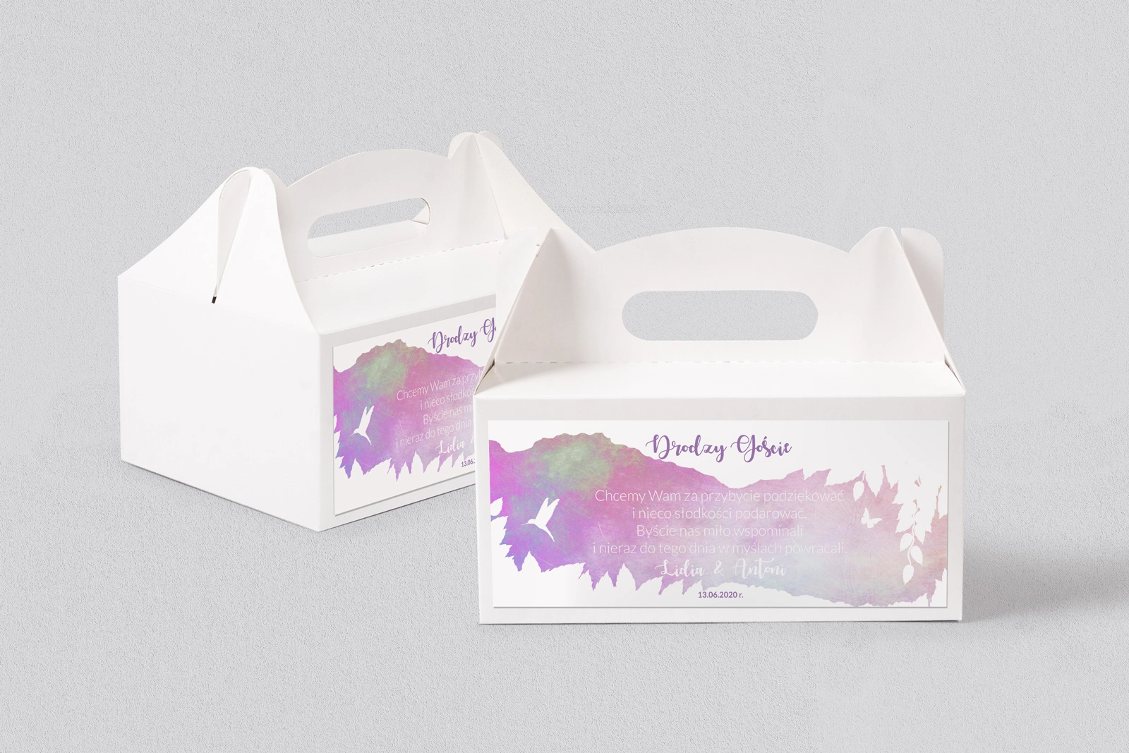 Kartonowe pudełka na placki Stylish pozwolą zabrać trochę uroku wesela do domu Waszych gości. Mogą posłużyć one jako wspaniała ozdoba, która będzie przypominać o cudownych chwilach przeżytych w ten najważniejszy dla Was dzień.