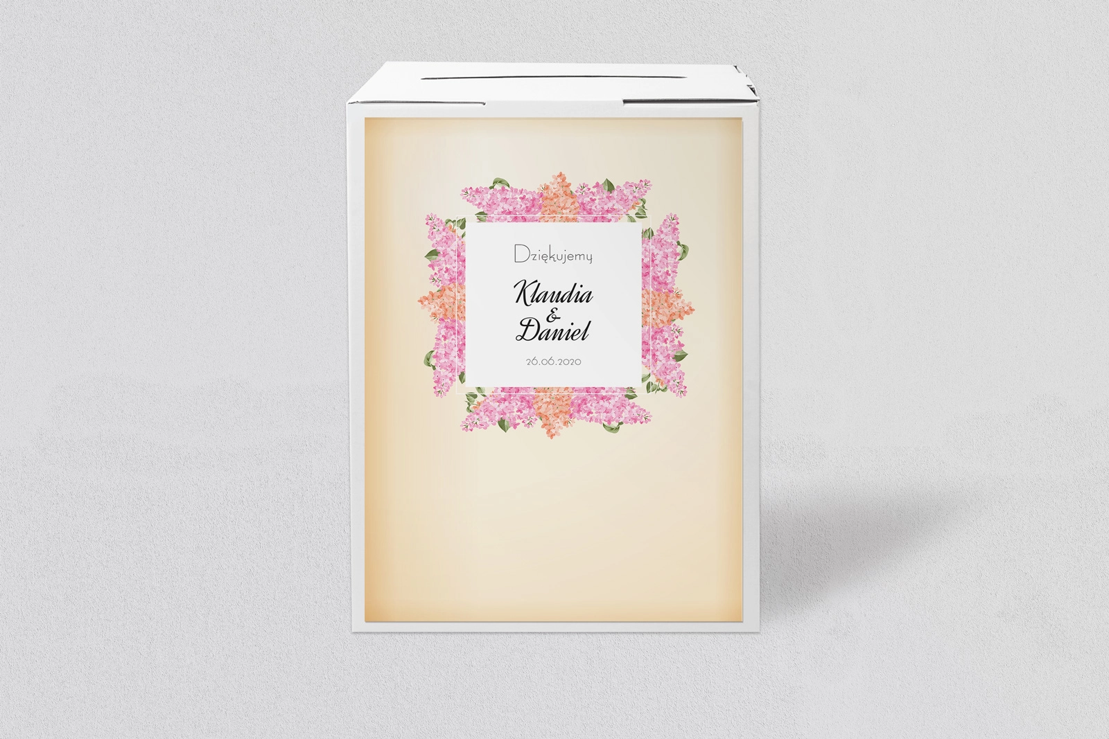 Na kwadracie można spersonalizować treść według swoich potrzeb i tym samym podziękować gościom za otrzymane prezenty.