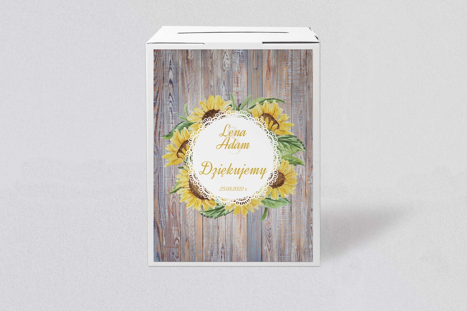 Wspaniały rustykalny styl, praktyczne zastosowanie i piękna ozdoba to są największe zalety pudełka na koperty z serii Rustical. Szata graficzna oparta jest na pięknych namalowanych kwiatach umieszczonych na brązowych deskach o żywym i naturalnym kolorze, a na nich podziękowanie wraz z Waszymi imionami wyhaftowane na pięknej serwetce.