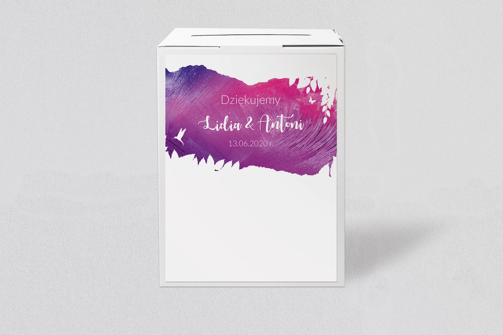 Pudełka na koperty Stylish to osiemnaście wzorów z motywami natury, kosmosu lub kolorów. Dzięki tak szerokiej możliwości wyboru, każdy znajdzie wzór który idealnie wkomponuje się w wystrój wesela, pomoże podziękować gościom za prezenty i co najważniejsze schowa wszystkie małe upominki w jednym, bezpiecznym miejscu.