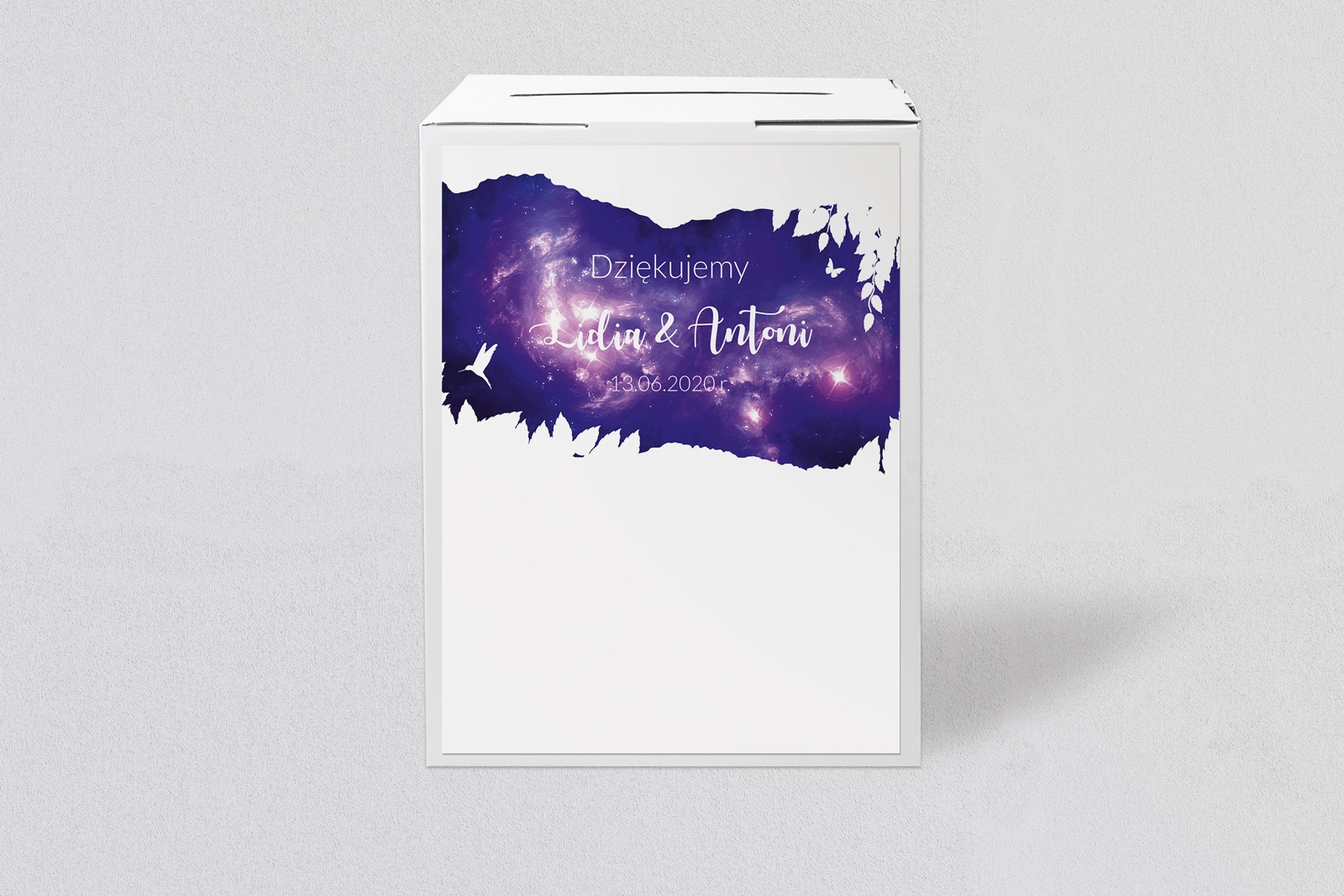 Pudełka na koperty Stylish to osiemnaście wzorów z motywami natury, kosmosu lub kolorów. Dzięki tak szerokiej możliwości wyboru, każdy znajdzie wzór który idealnie wkomponuje się w wystrój wesela, pomoże podziękować gościom za prezenty i co najważniejsze schowa wszystkie małe upominki w jednym, bezpiecznym miejscu.
