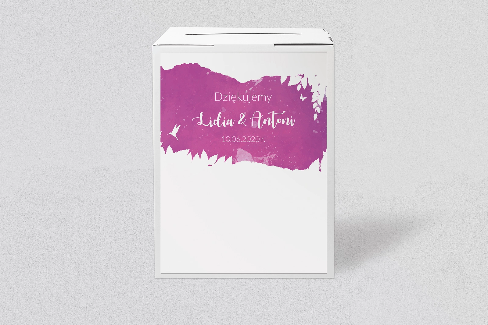 Pudełka na koperty Stylish to osiemnaście wzorów z motywami natury, kosmosu lub kolorów. Dzięki tak szerokiej możliwości wyboru, każdy znajdzie wzór który idealnie wkomponuje się w wystrój wesela, pomoże podziękować gościom za prezenty i co najważniejsze schowa wszystkie małe upominki w jednym, bezpiecznym miejscu.
