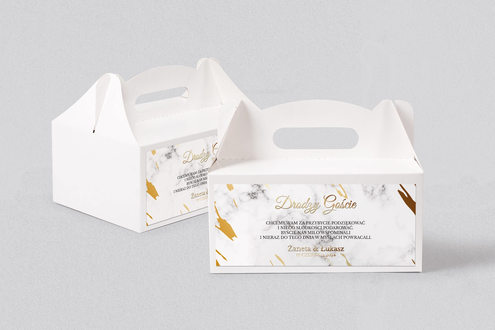 Pudełko na ciasto weselne Marmur & Złoto - Motyw 3
