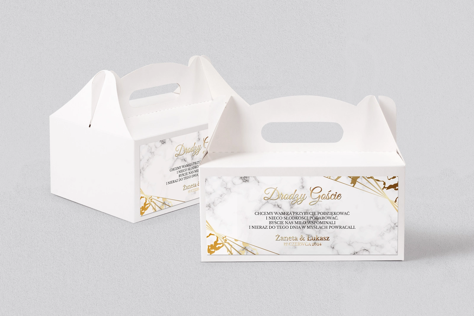 Pudełko na ciasto weselne Marmur & Złoto - Motyw 4