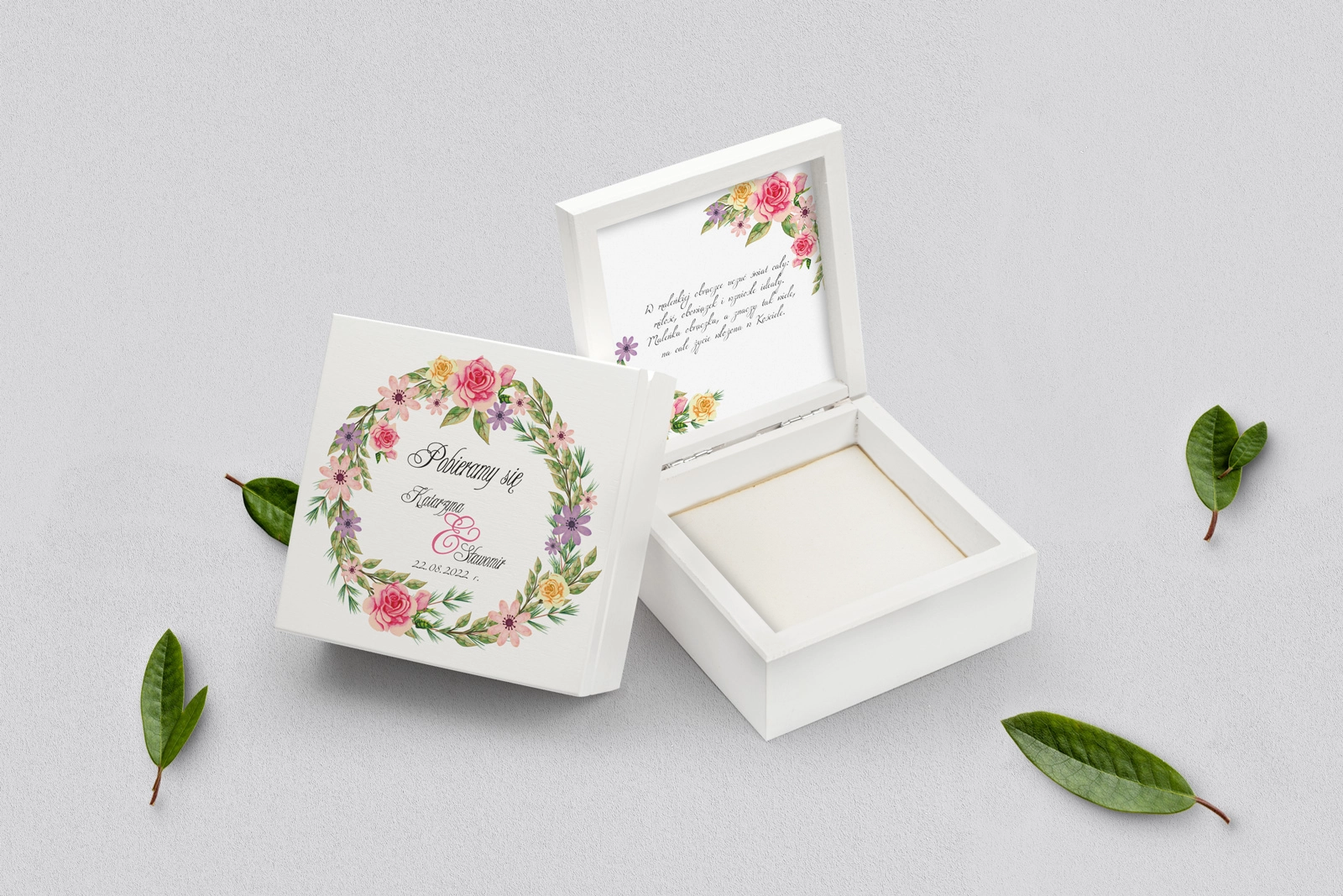 Pudełko na obrączki białe - Akwarelowe Wianki Motyw 5