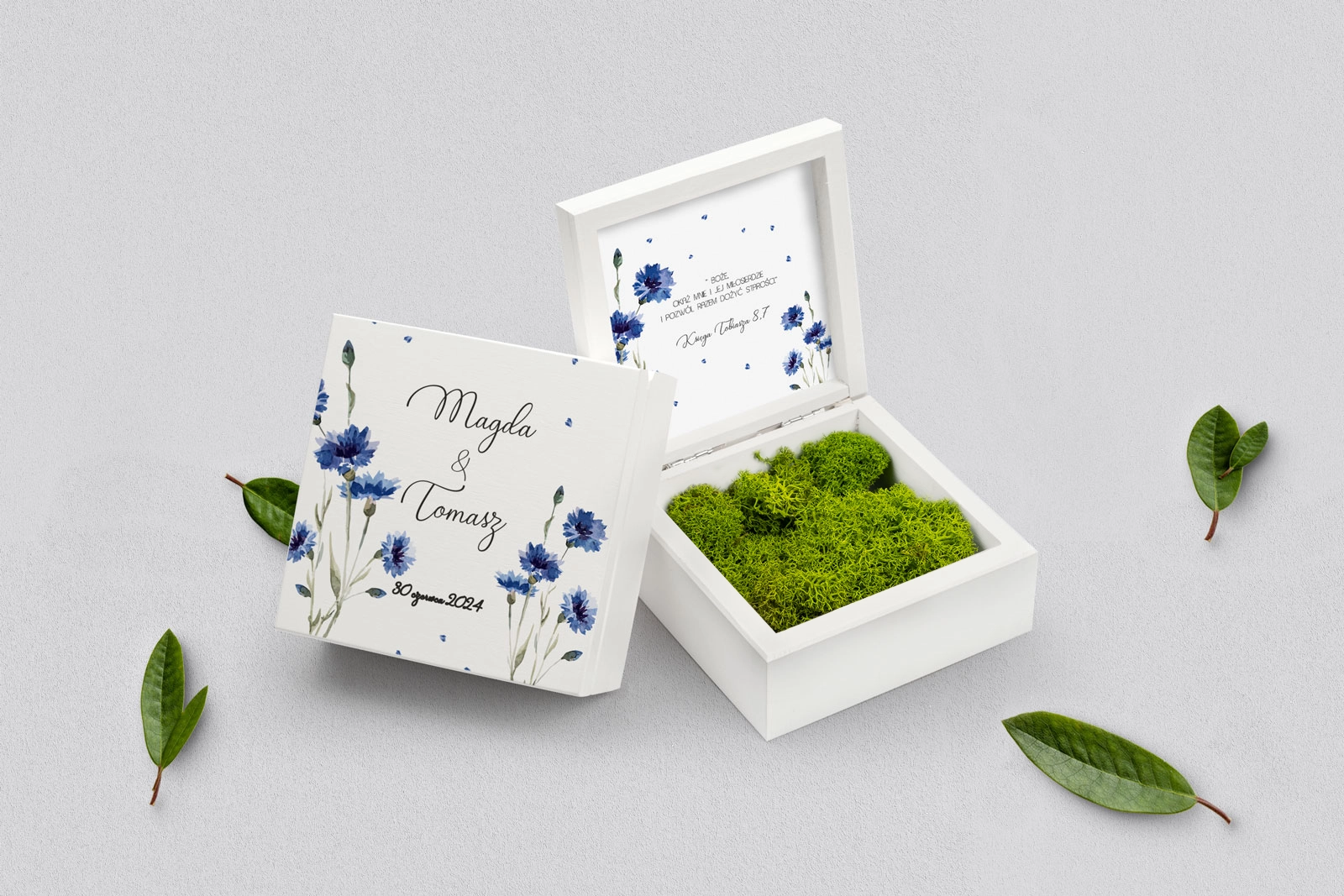 Na tej karcie produktu kupujesz Pudełka na obrączki w konfiguracji określonej w specyfikacji.