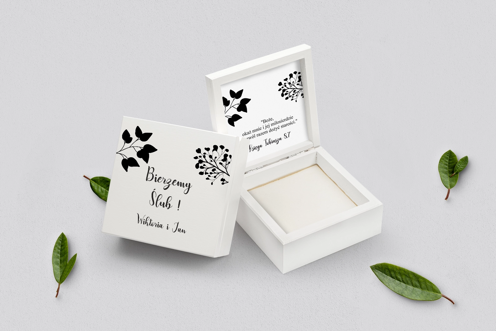 Na tej karcie produktu kupujesz Pudełka na obrączki w konfiguracji określonej w specyfikacji.