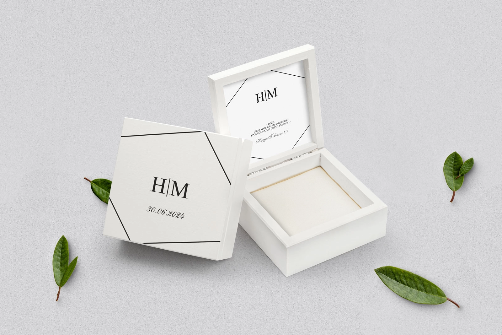 Na tej karcie produktu kupujesz Pudełka na obrączki w konfiguracji określonej w specyfikacji.