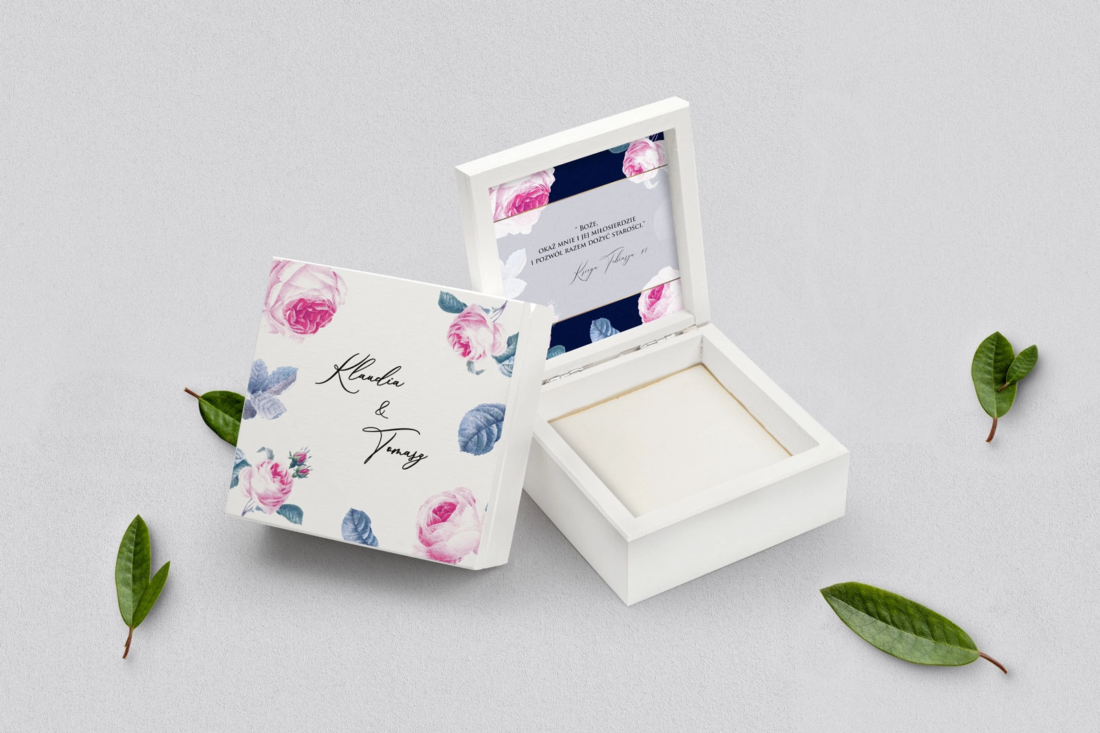 Na tej karcie produktu kupujesz Pudełka na obrączki w konfiguracji określonej w specyfikacji.