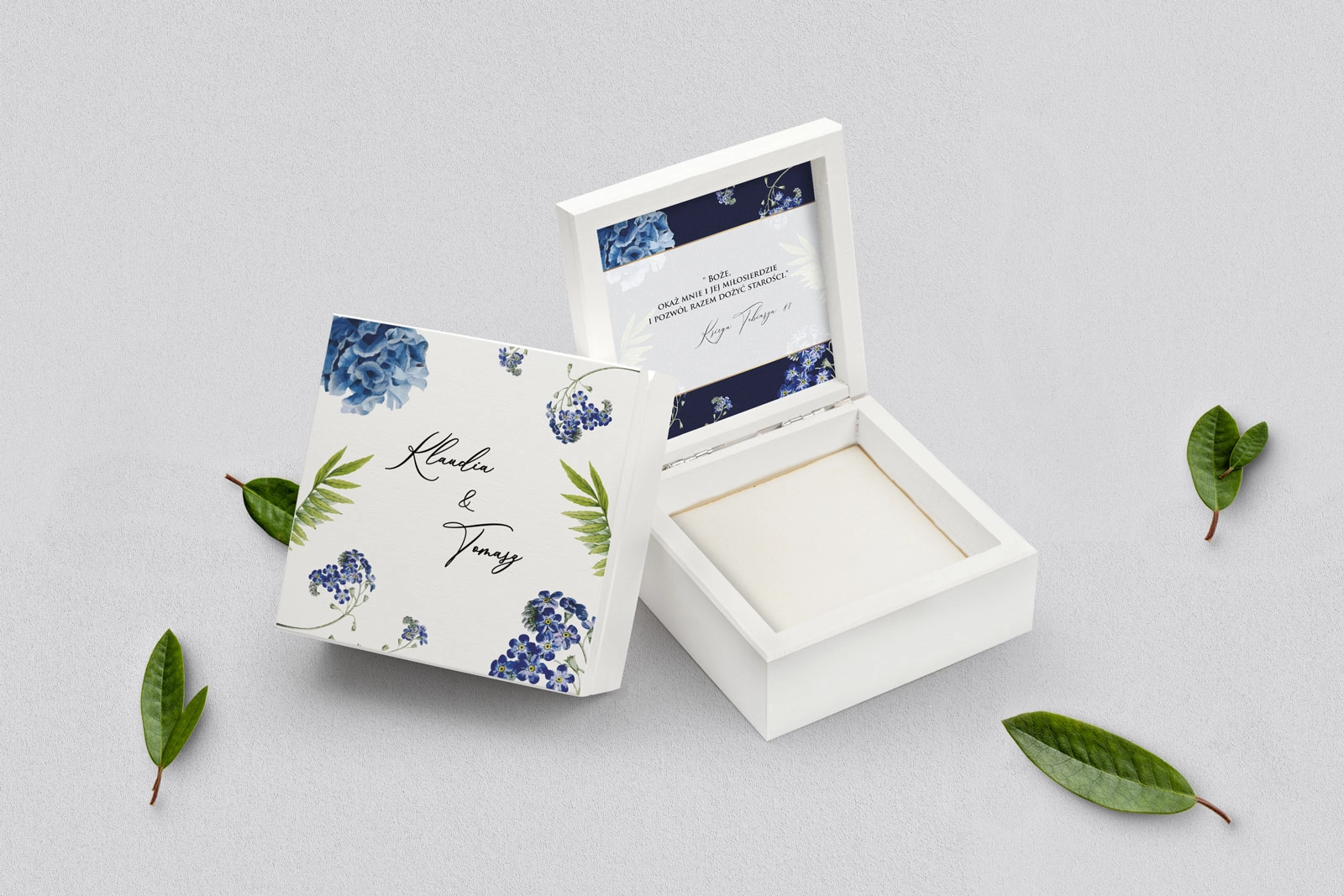 Na tej karcie produktu kupujesz Pudełka na obrączki w konfiguracji określonej w specyfikacji.