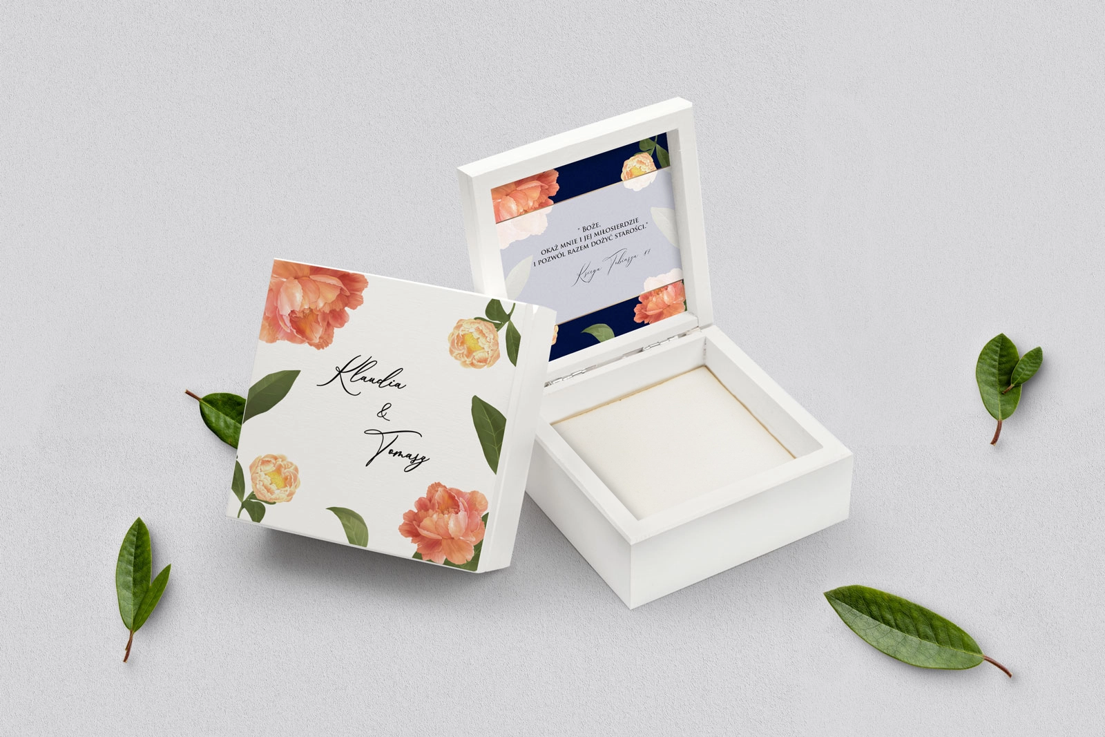 Na tej karcie produktu kupujesz Pudełka na obrączki w konfiguracji określonej w specyfikacji.