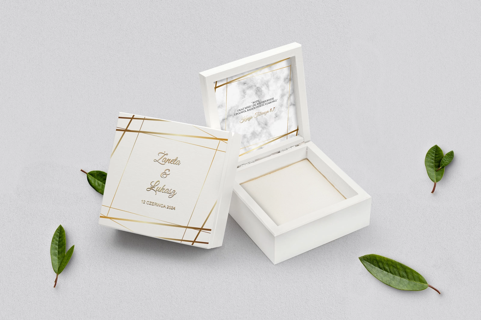 Na tej karcie produktu kupujesz Pudełka na obrączki w konfiguracji określonej w specyfikacji.