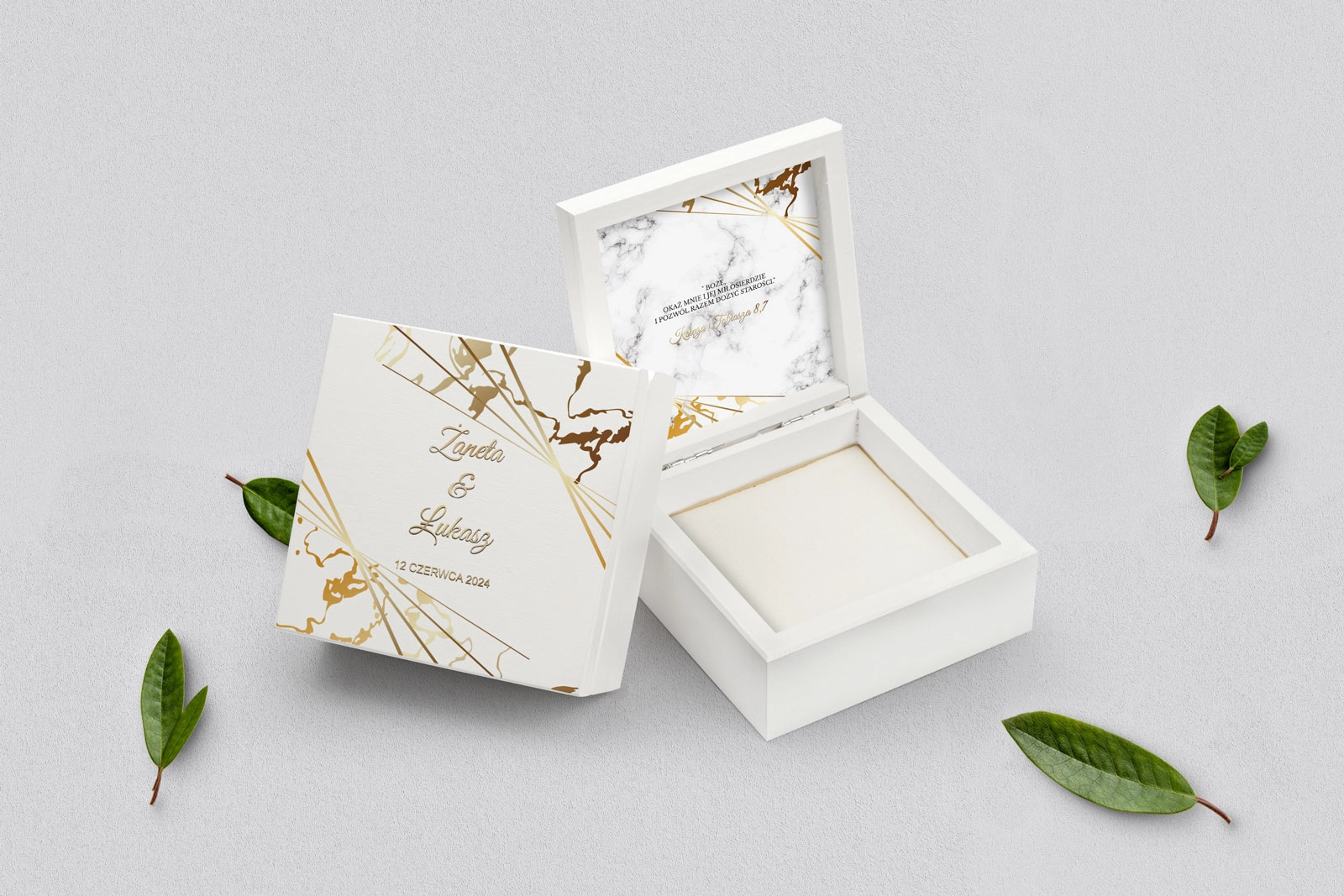 Pudełko na obrączki białe - Marmur i złoto Motyw 4