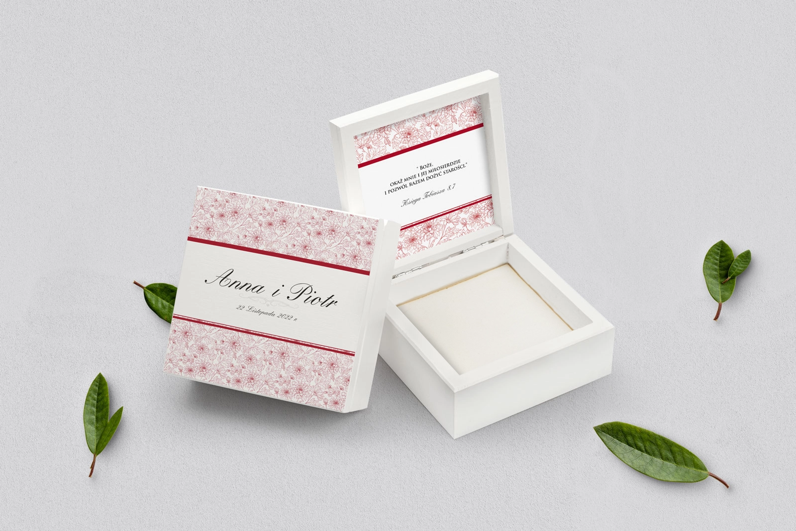 Na tej karcie produktu kupujesz Pudełka na obrączki w konfiguracji określonej w specyfikacji.