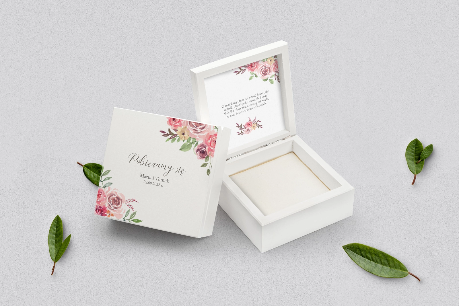Na tej karcie produktu kupujesz Pudełka na obrączki w konfiguracji określonej w specyfikacji.