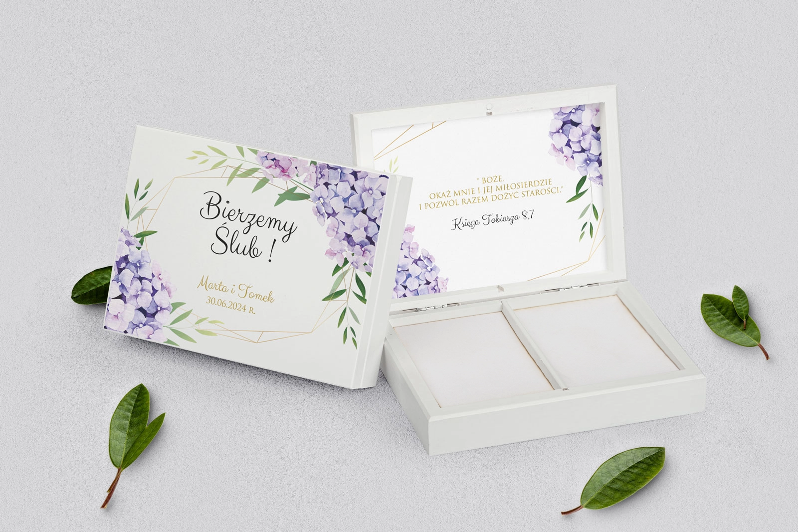 Na tej karcie produktu kupujesz Pudełka na obrączki w konfiguracji określonej w specyfikacji.
